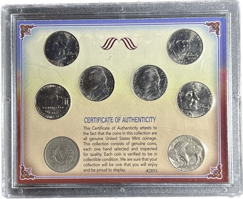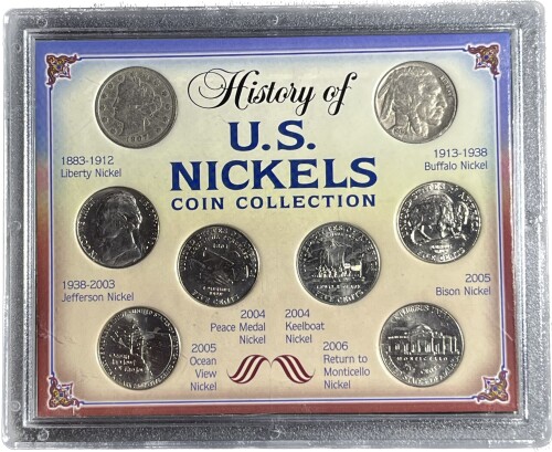 . 1907-2006 History of U.S. Nickels Coin Collection in Custom Case - 8 Nickels