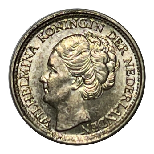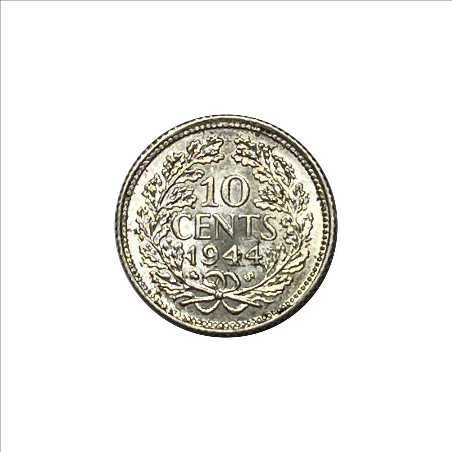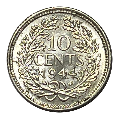 * 1944 Netherlands Silver Wilhelmina Koningin der Nederlanden 10 Cent Coin