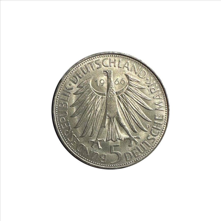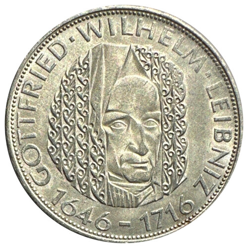 - 1966-D Germany Silver Large 5 Marks - Gottfried Wilhelm Leibniz