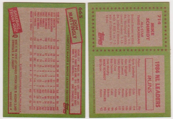 1985 Topps Don Mattingly #665 + Mike Schmidt #714 Card Pair