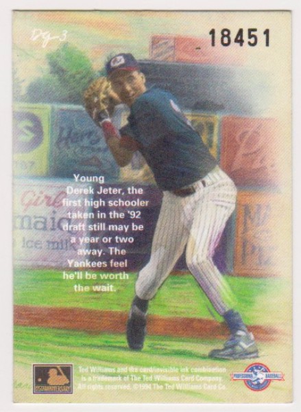 Derek Jeter Rookie - 1994 Ted Williams Company Gardiner Collection #DG-3 Dan Gardiner Insert Card