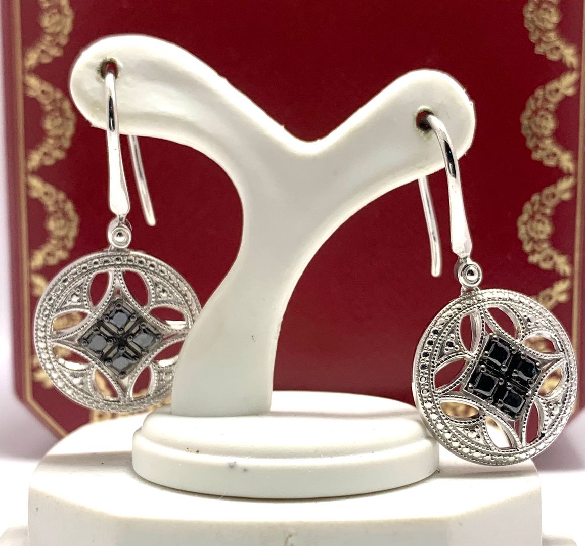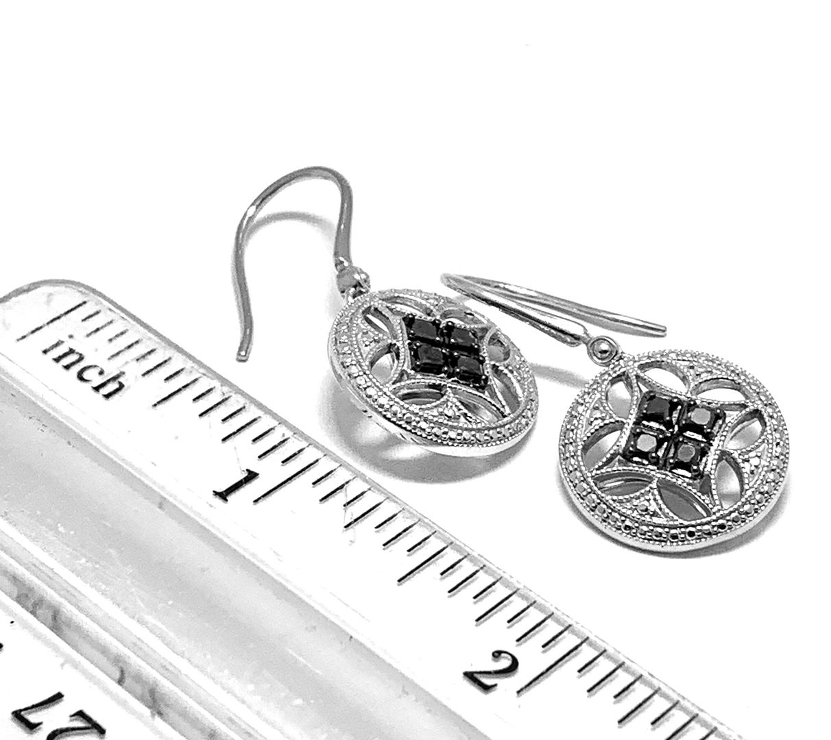 0.50ctw Genuine Black Diamonds Earrings 14k White Gold & .925 Sterling Silver.