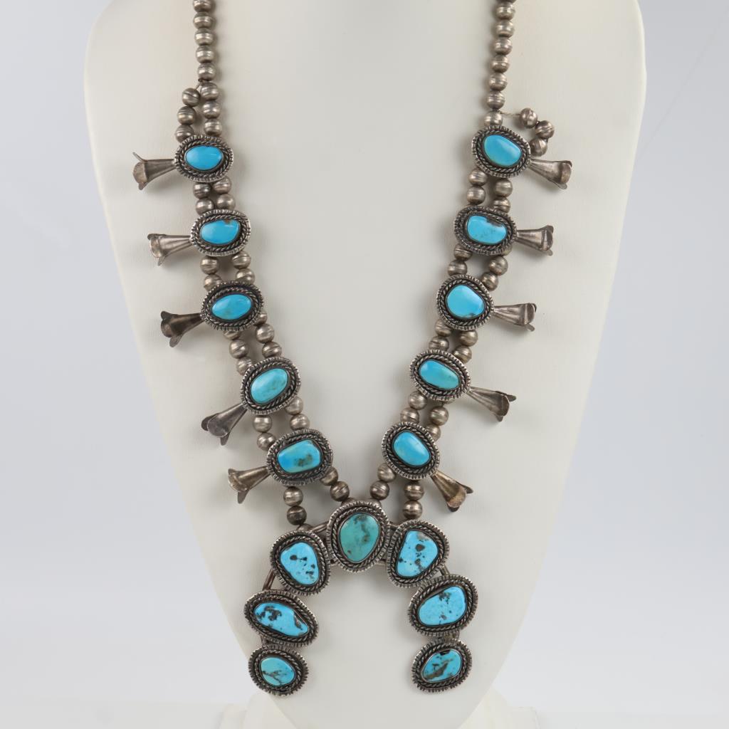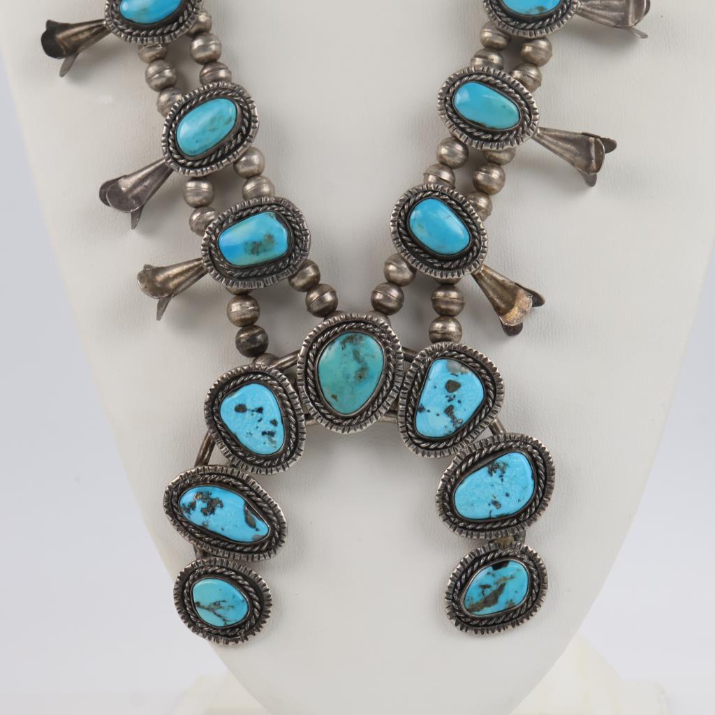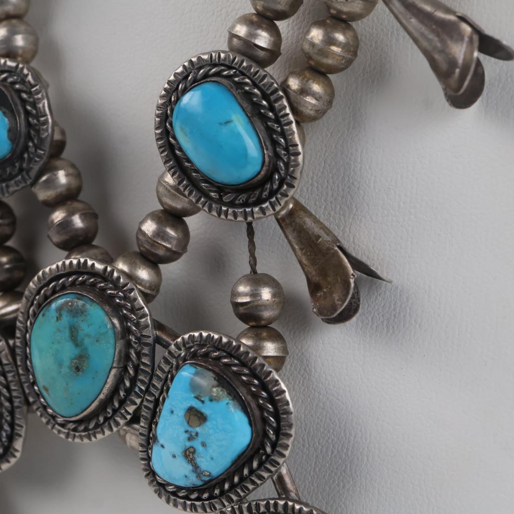0.800 - 0.900 Silver Squash Blossom Turquoise Necklace
