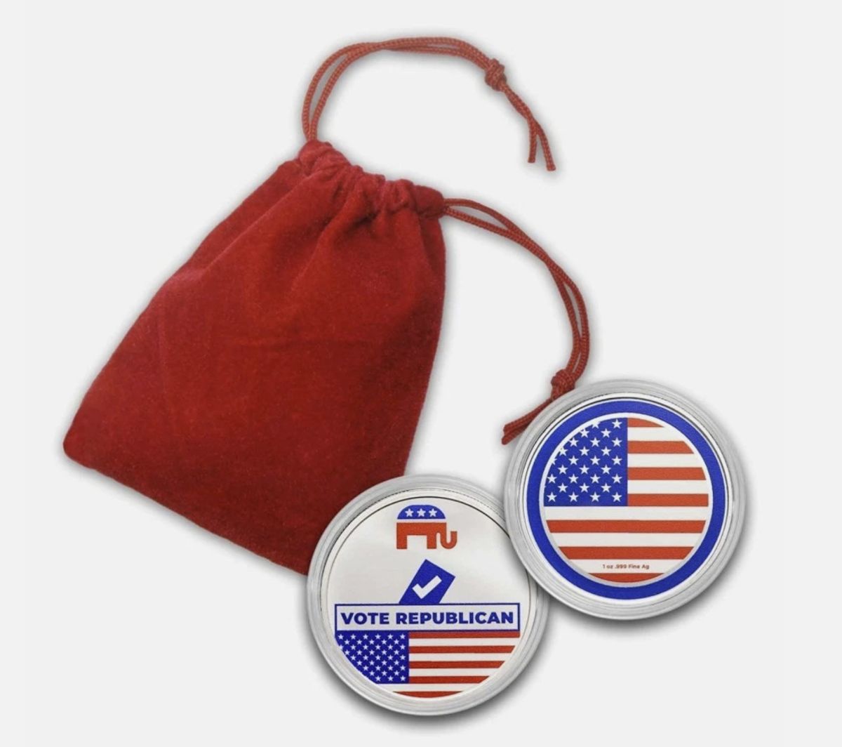 1 oz. 999 (Ag) Silver Colorized Round - Vote Republican Silver Round w/ Gift Bag