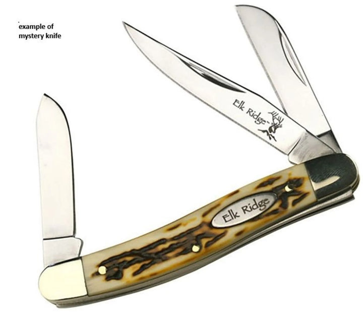 Each box includes 10 pieces consisting of folding knives, fixed blades, self defense items, throwing knives and more! Each box is different, no 2 boxes are the same. Photos are examples of types of knives that could be included. These are mystery items. All items are new.