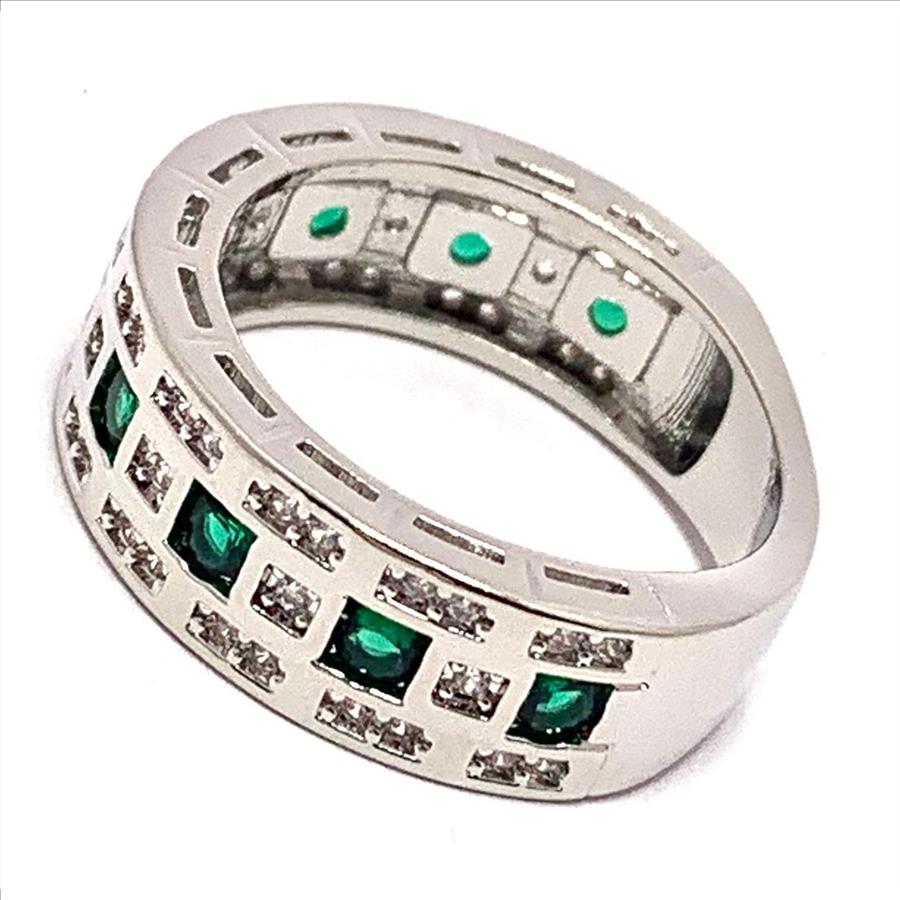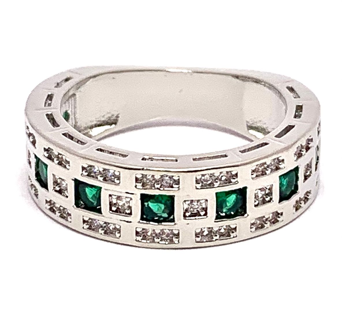 1.00ctw Emerald & Cubic Zirconia 18k White Gold Overlay Ring / Band