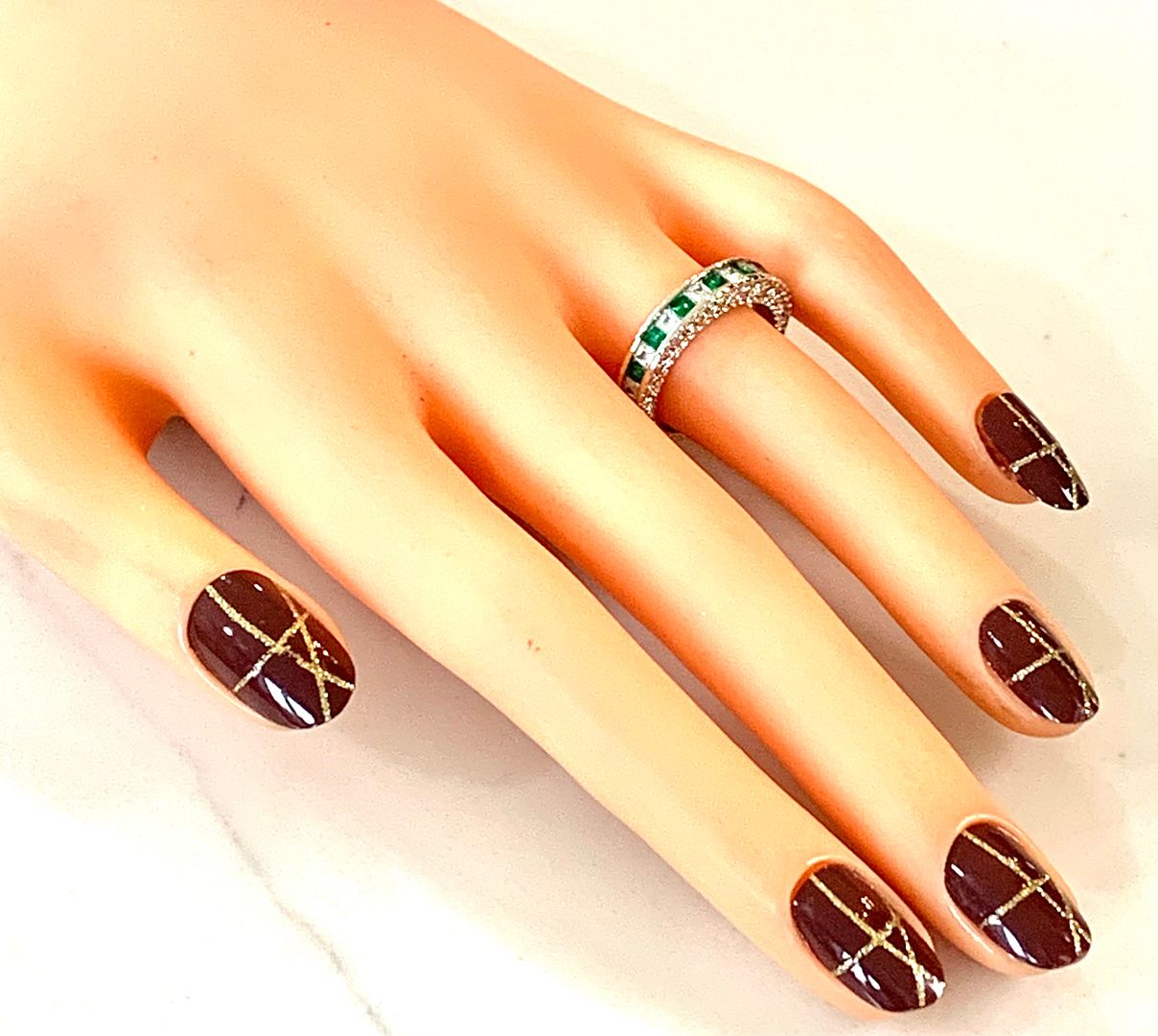 1.00ctw Emerald & Cubic Zirconia 18k White Gold Overlay Ring / Band