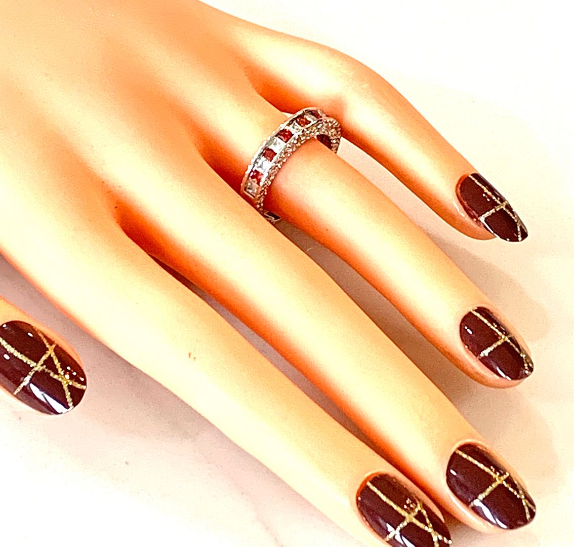 1.00ctw Garnet & Cubic Zirconia 18k White Gold Overlay Ring / Band