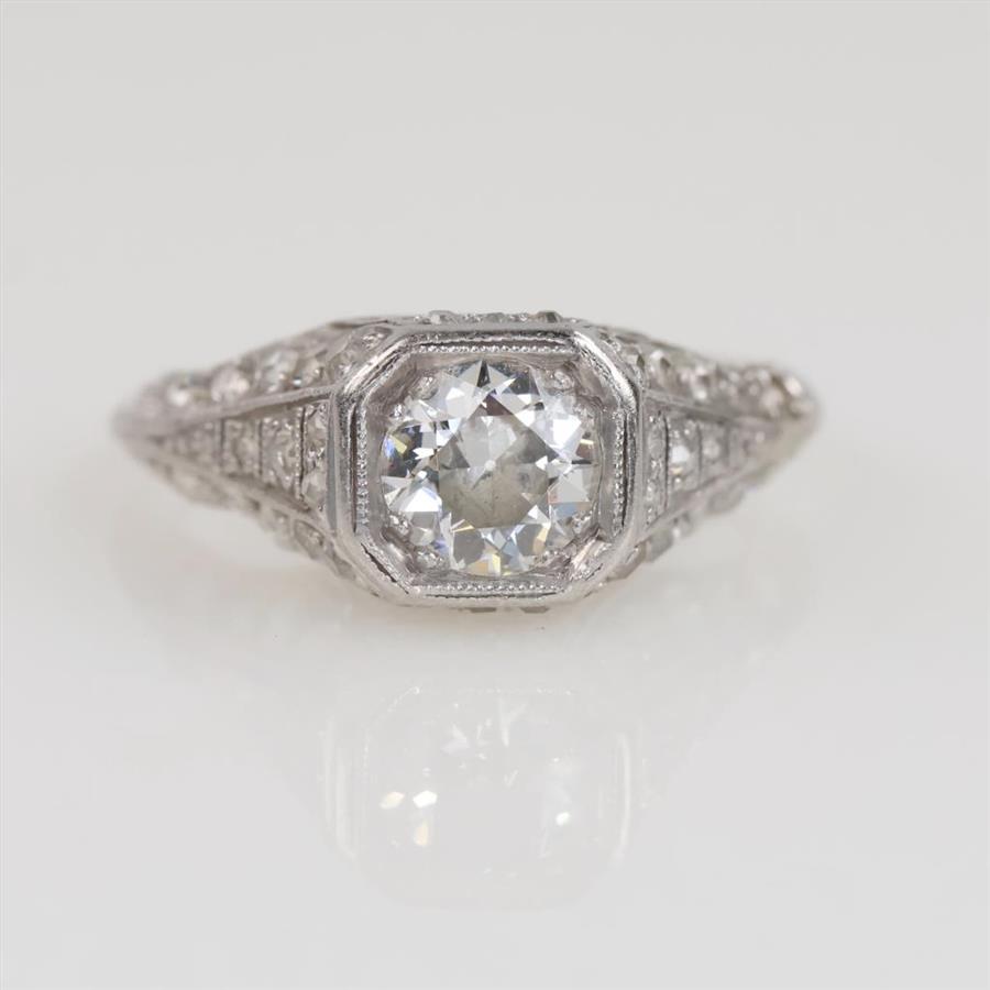 1.04ctTW Diamond Platinum Vintage Filigree Engagement Ring-Evaluated By Certified Gemologist-AGS/GIA