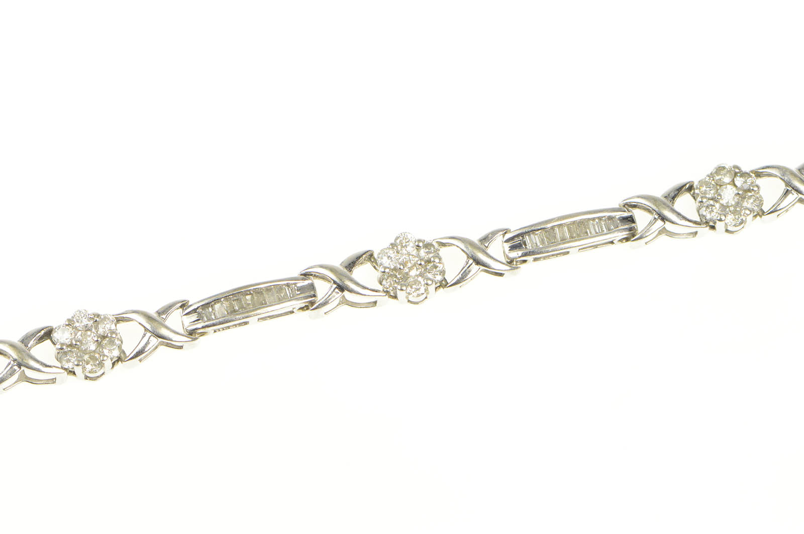 Item:  10K 2.50 Ctw Diamond Flower Cluster Bar Tennis White Gold Bracelet 8"
