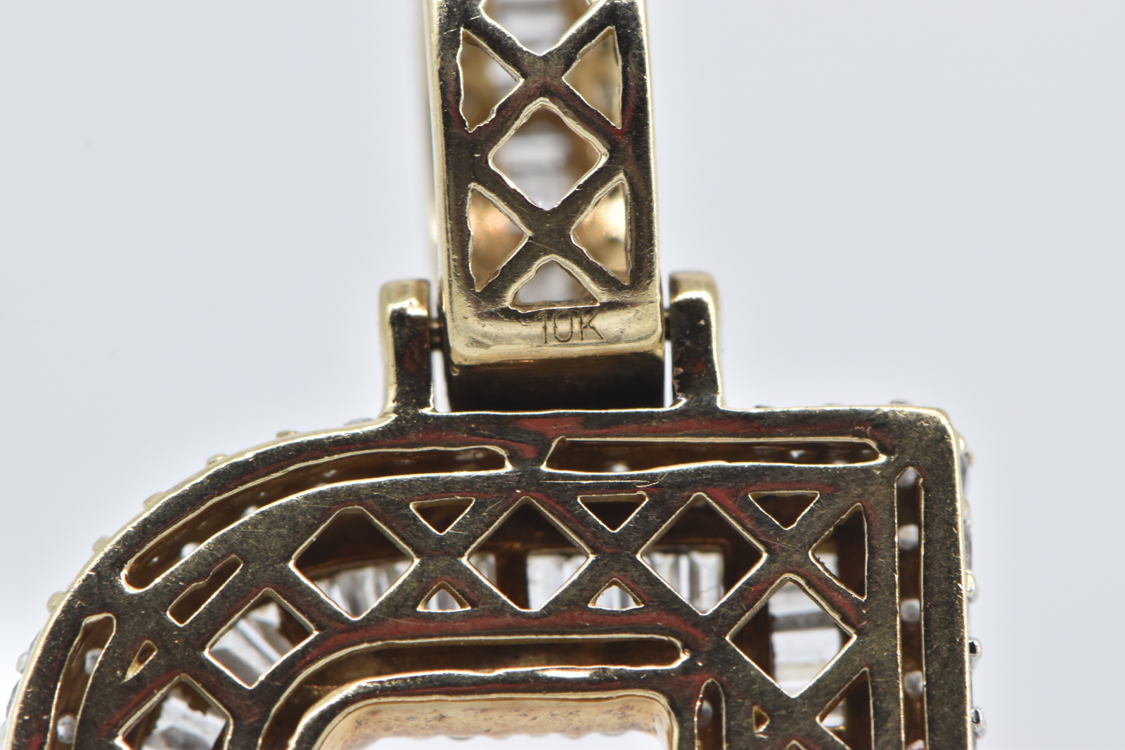 10K 4.10 Ctw Diamond Encrusted R Monogram Name Yellow Gold Pendant