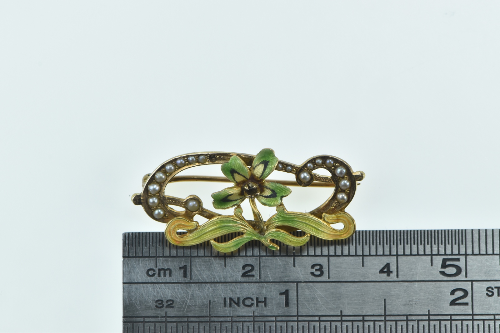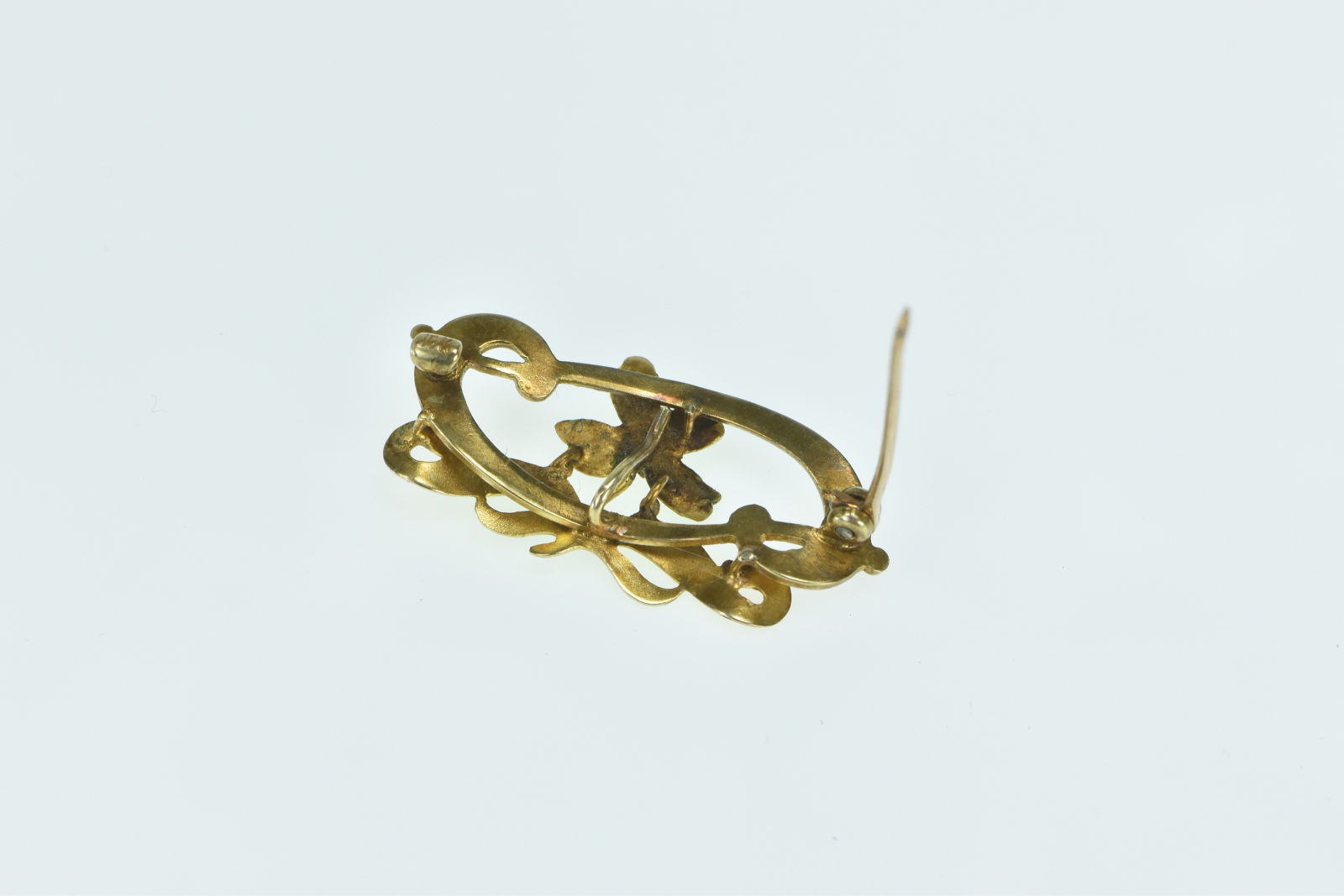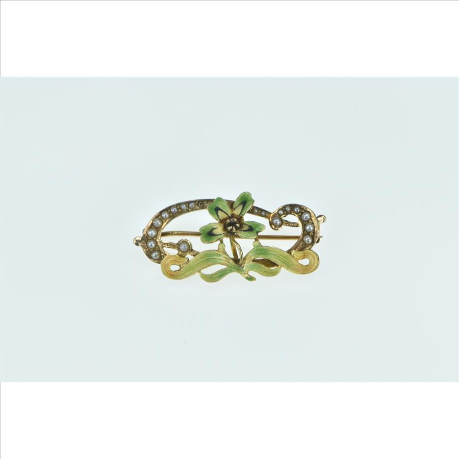 10K Art Nouveau Seed Pearl Ornate Flower Yellow Gold Pin/Brooch