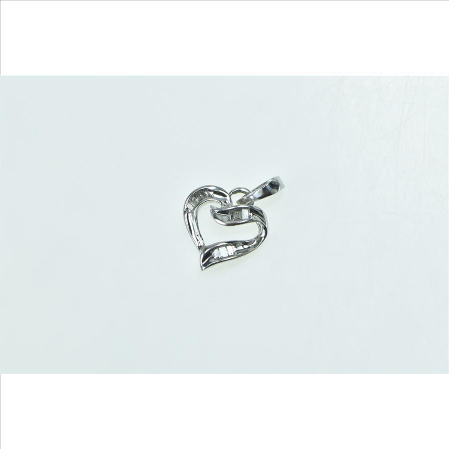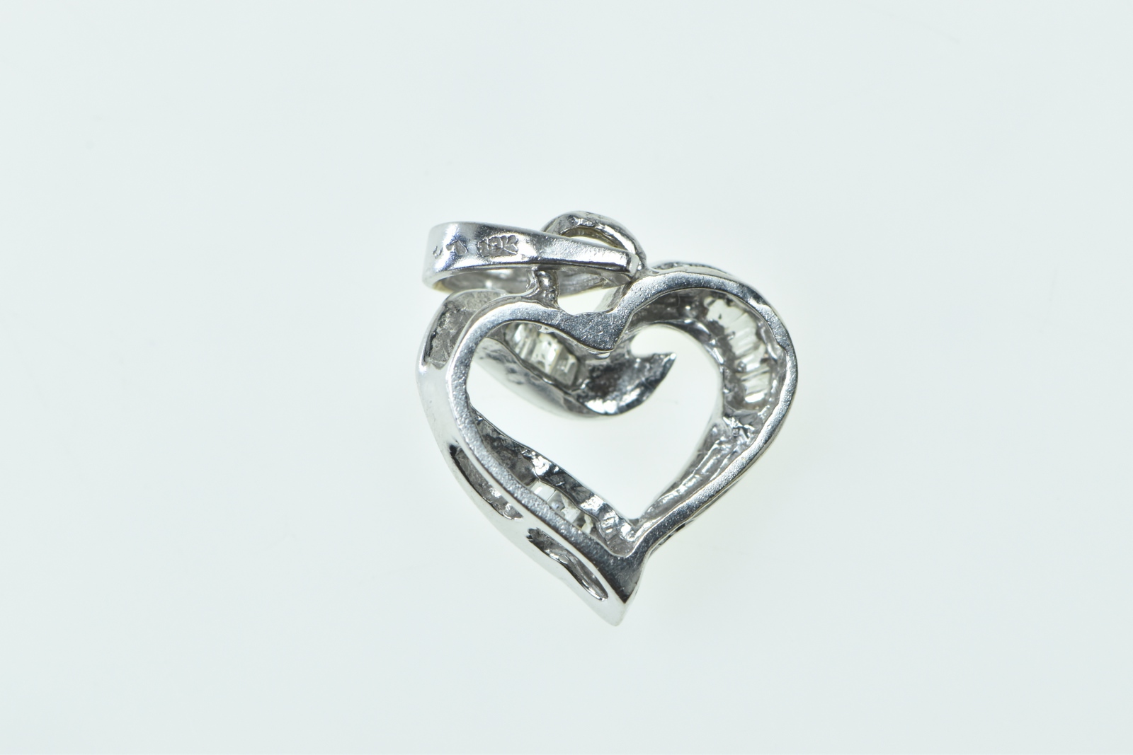 10K Baguette Diamond Heart Love Symbol White Gold Pendant