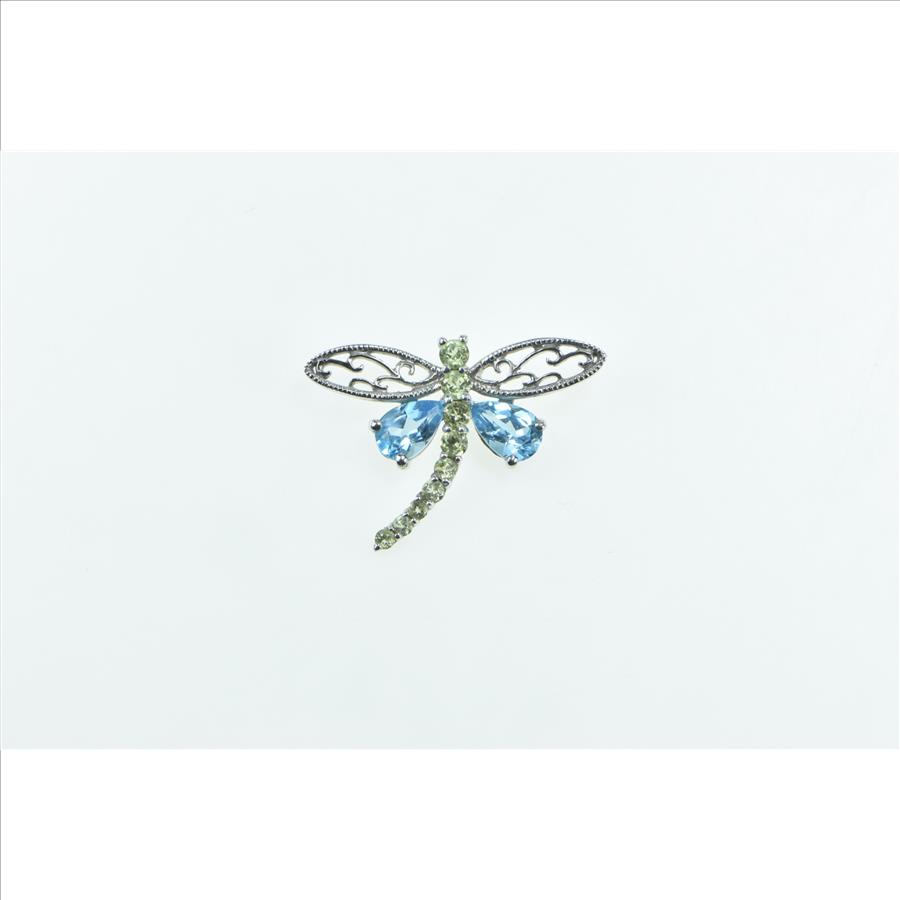 Item:  10K Blue Topaz Peridot Dragonfly Change Symbol White Gold Pendant