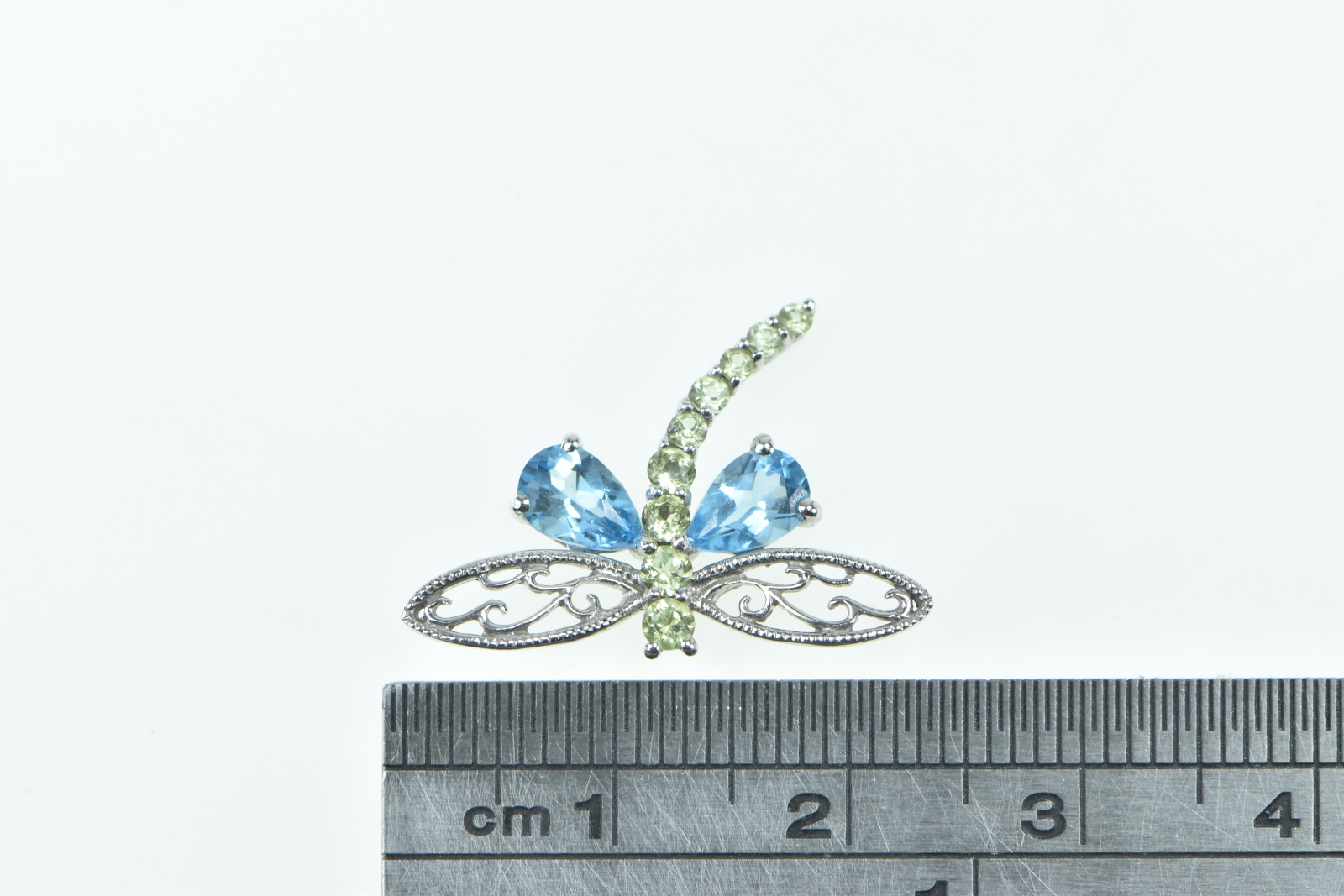 10K Blue Topaz Peridot Dragonfly Change Symbol White Gold Pendant