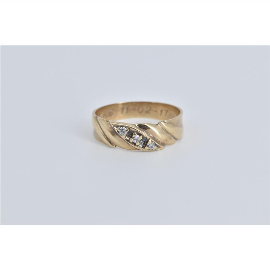 Item:  10K Classic Diamond Striped Wedding Band Yellow Gold Ring, Size 10.75