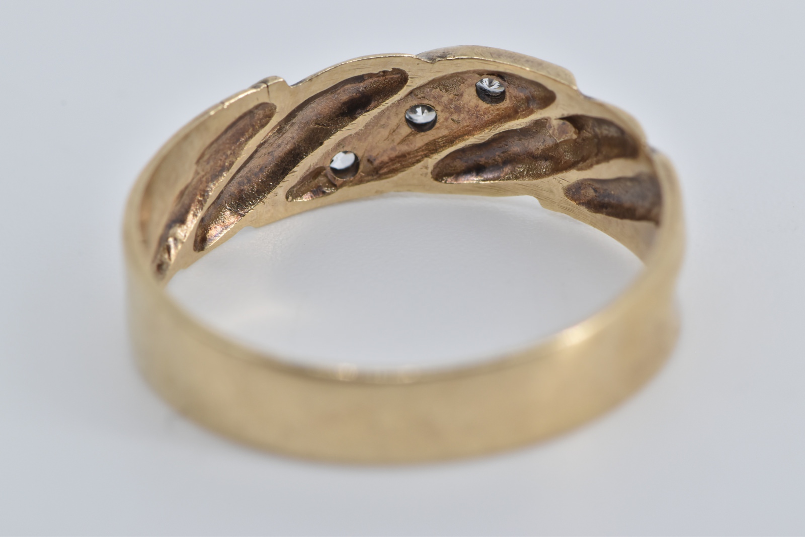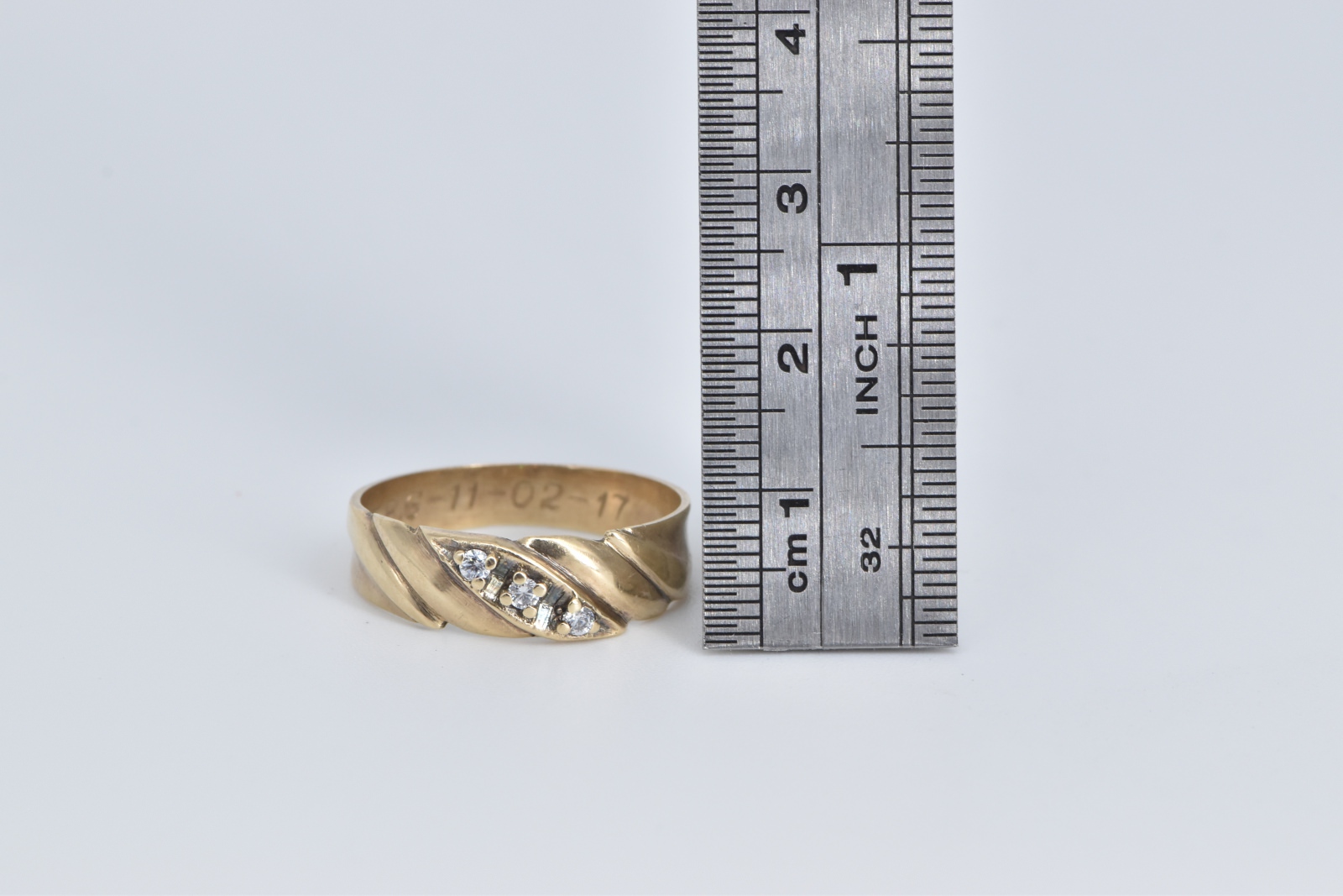 10K Classic Diamond Striped Wedding Band Yellow Gold Ring, Size 10.75