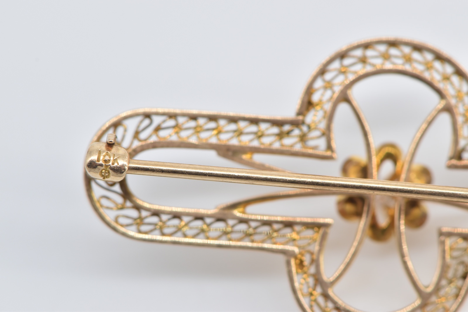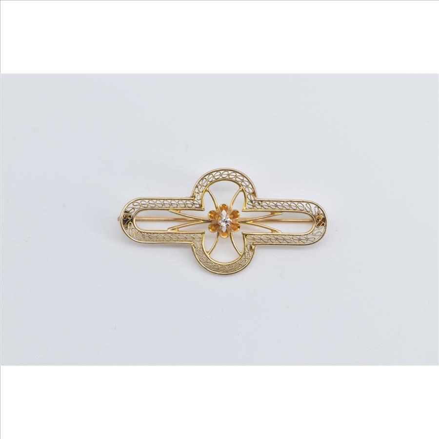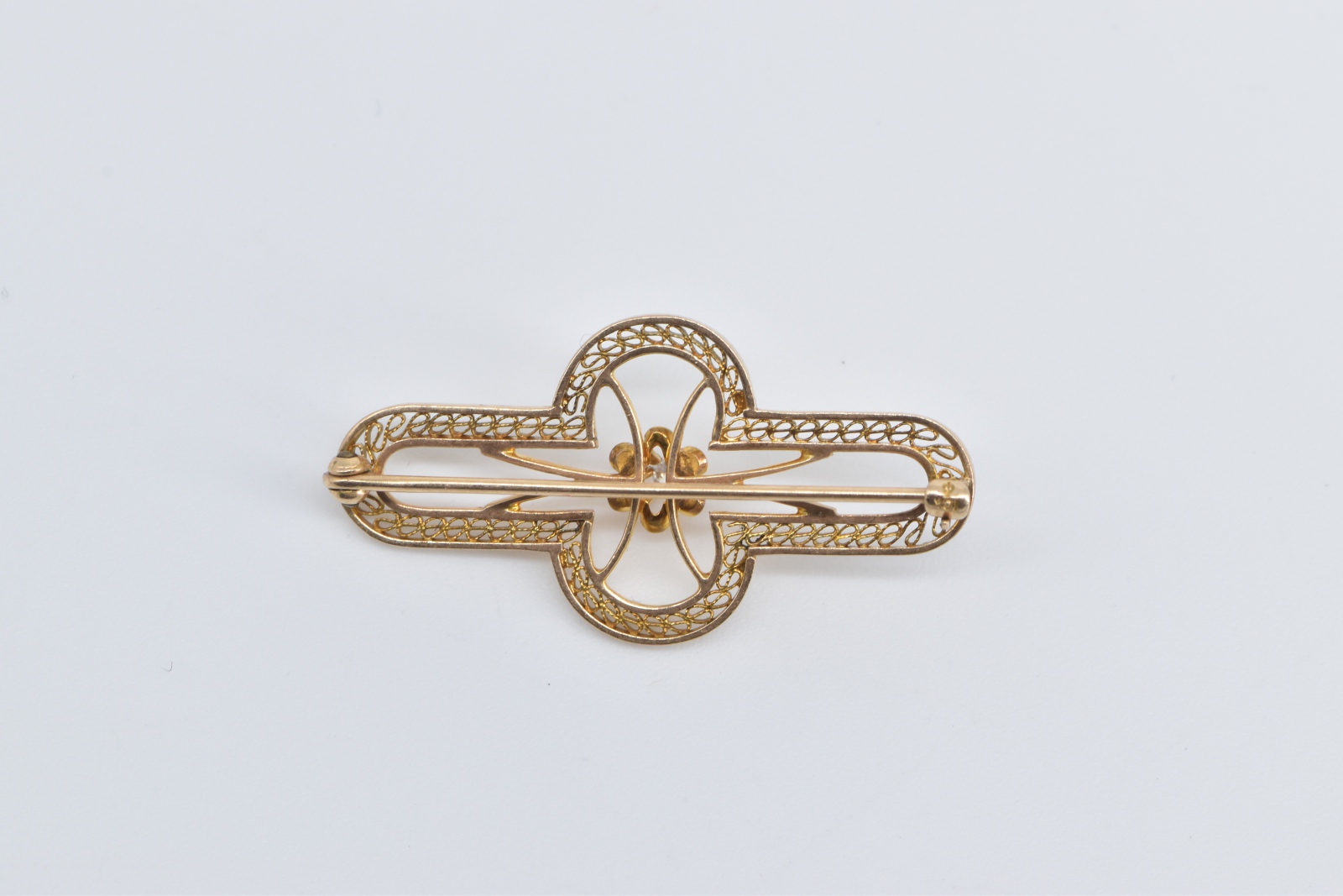 10K Diamond Art Deco Filigree Rounded Bar Yellow Gold Pin/Brooch