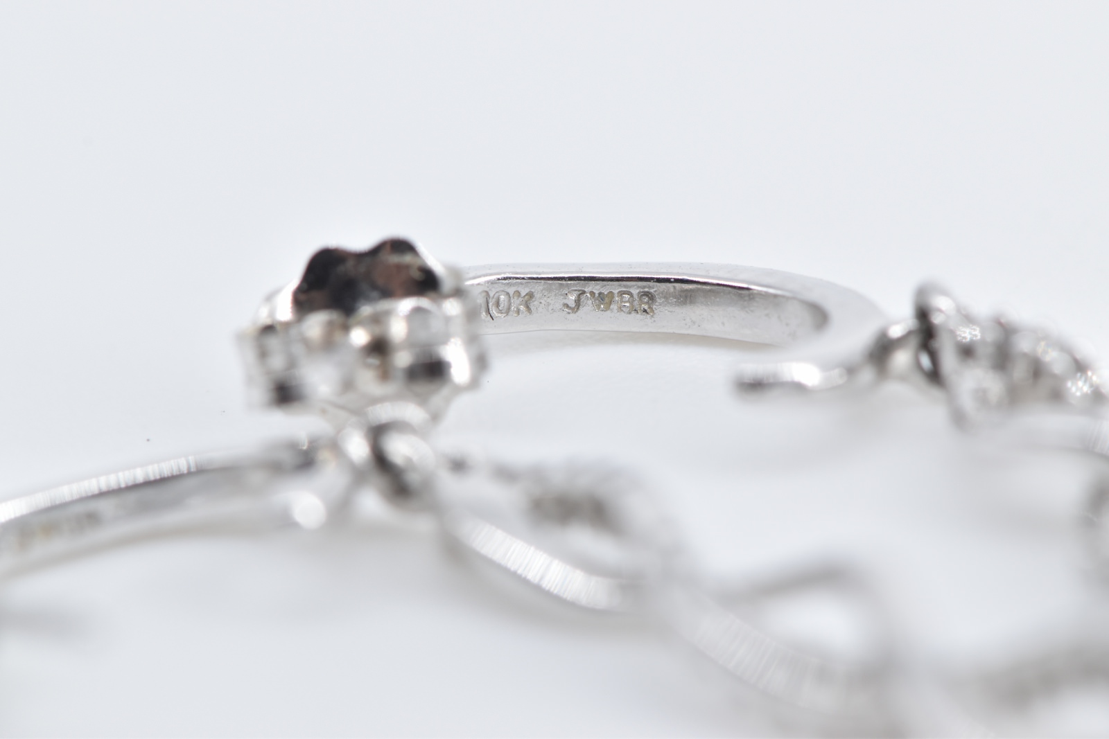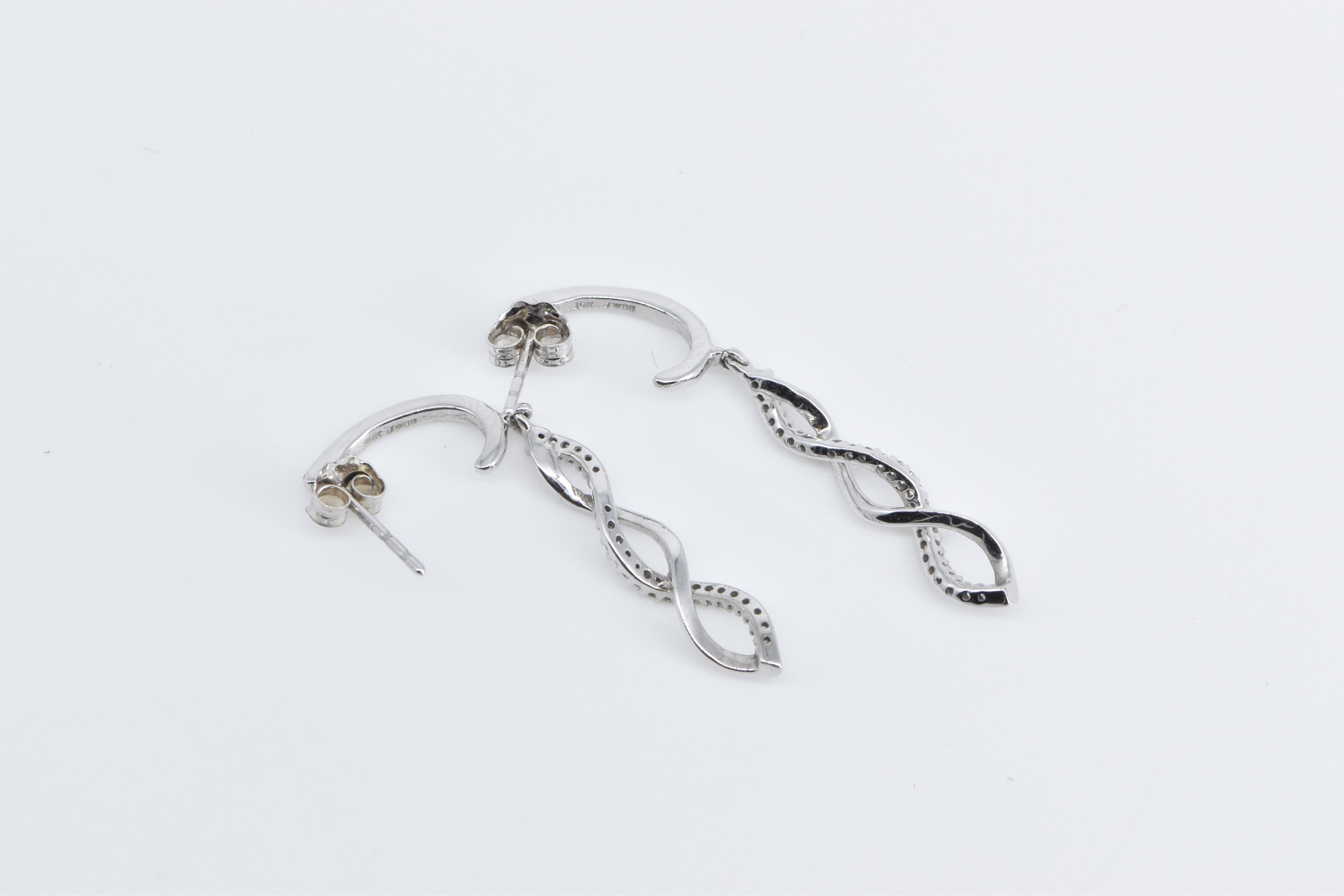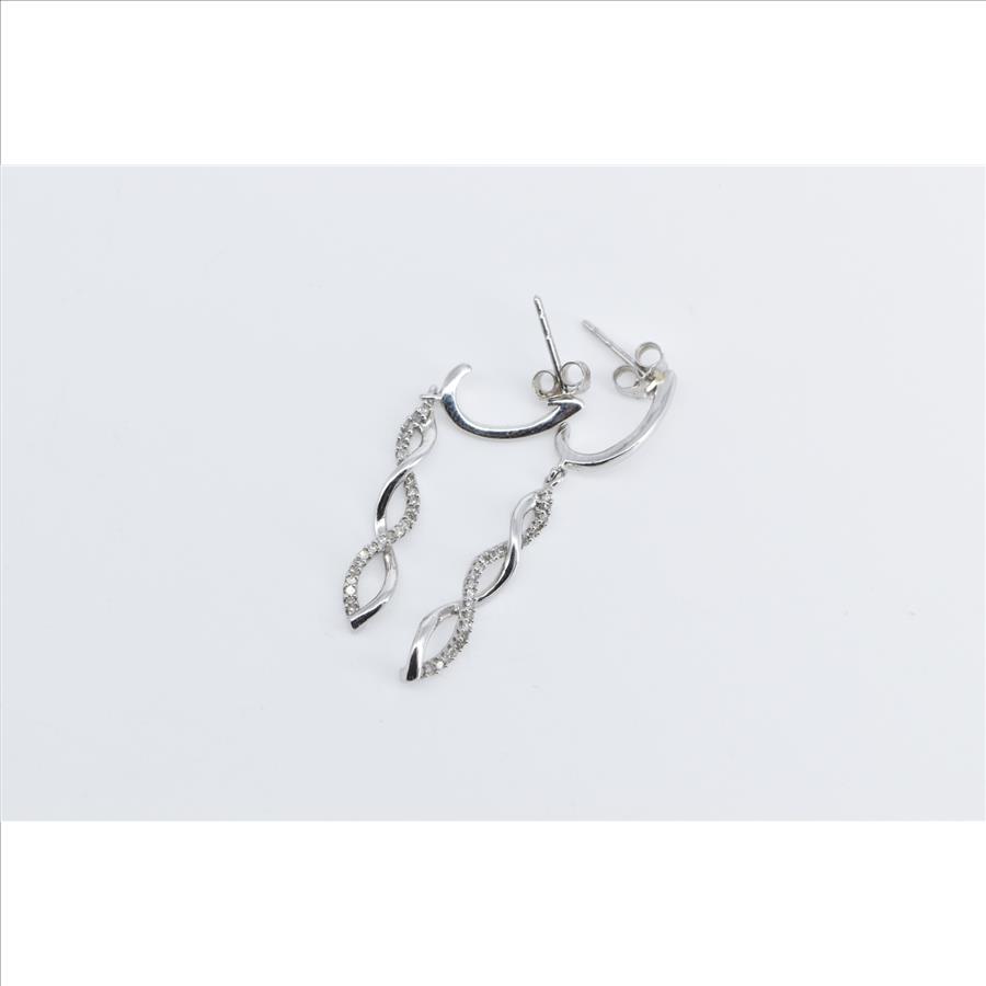 Item:  10K Diamond Twist Spiral Dangle Fashion White Gold Earrings