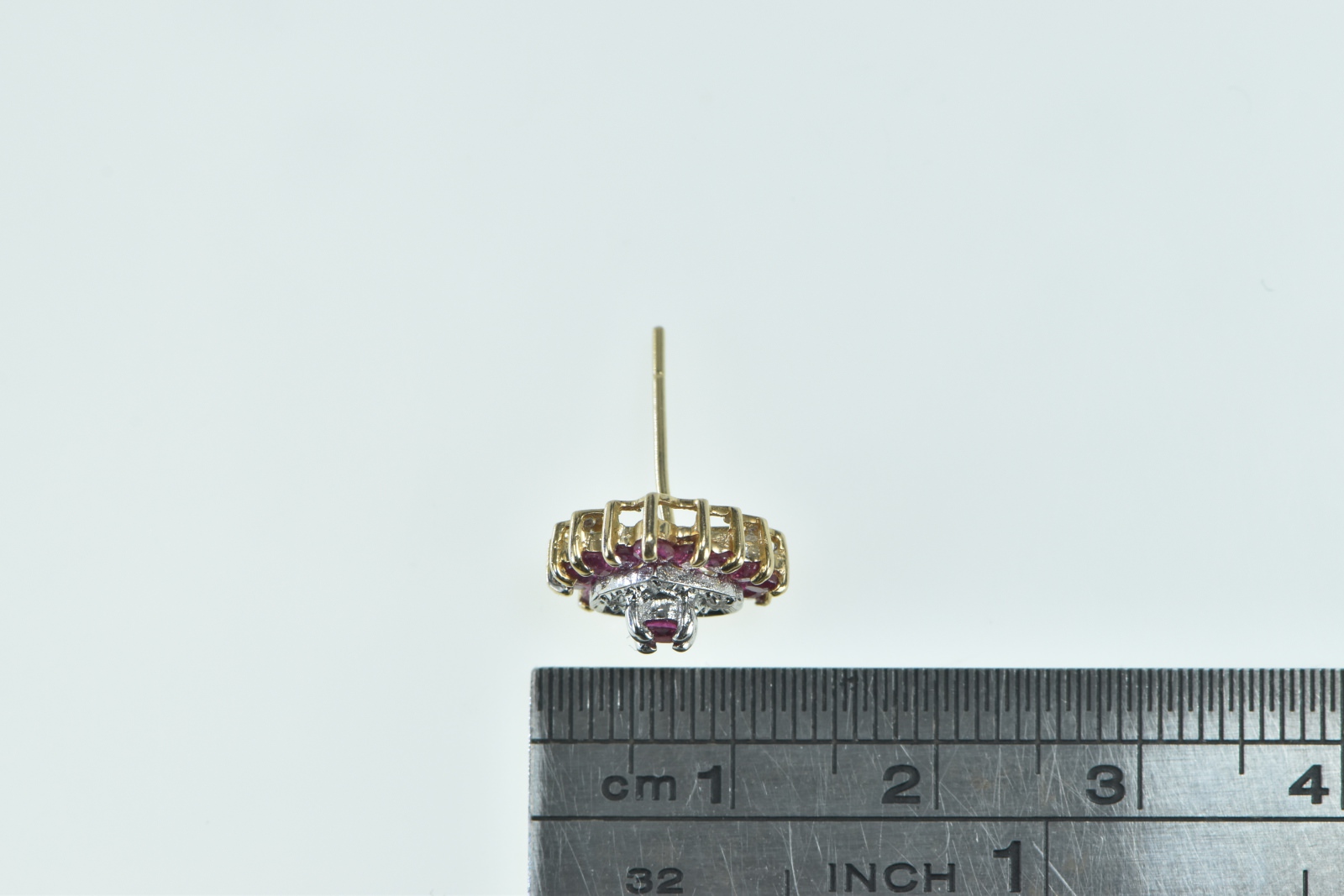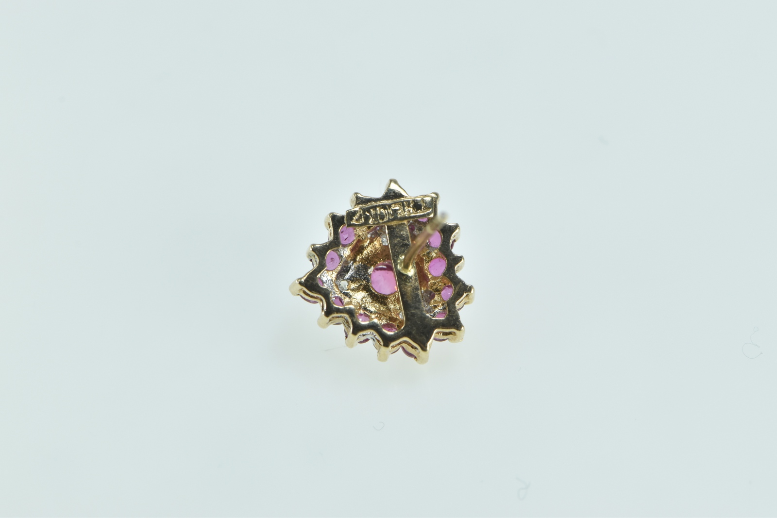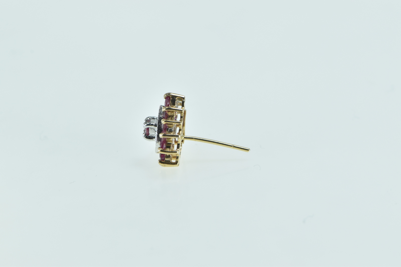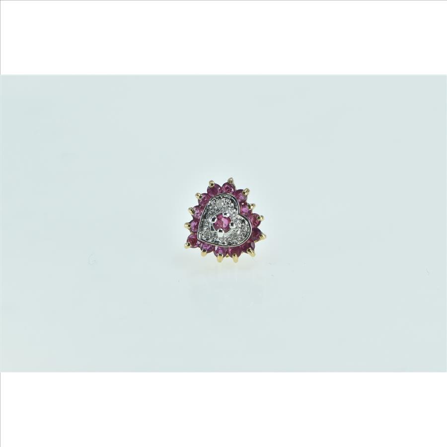 Item:  10K Heart Ruby Diamond Halo Single Stud Yellow Gold Earring