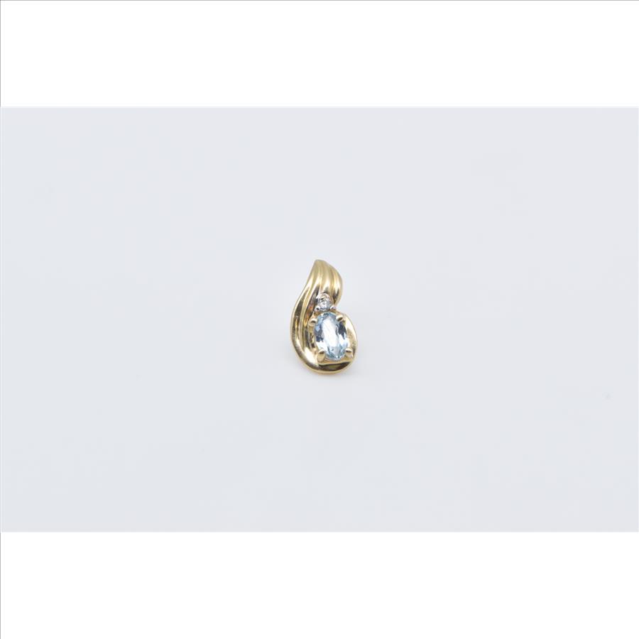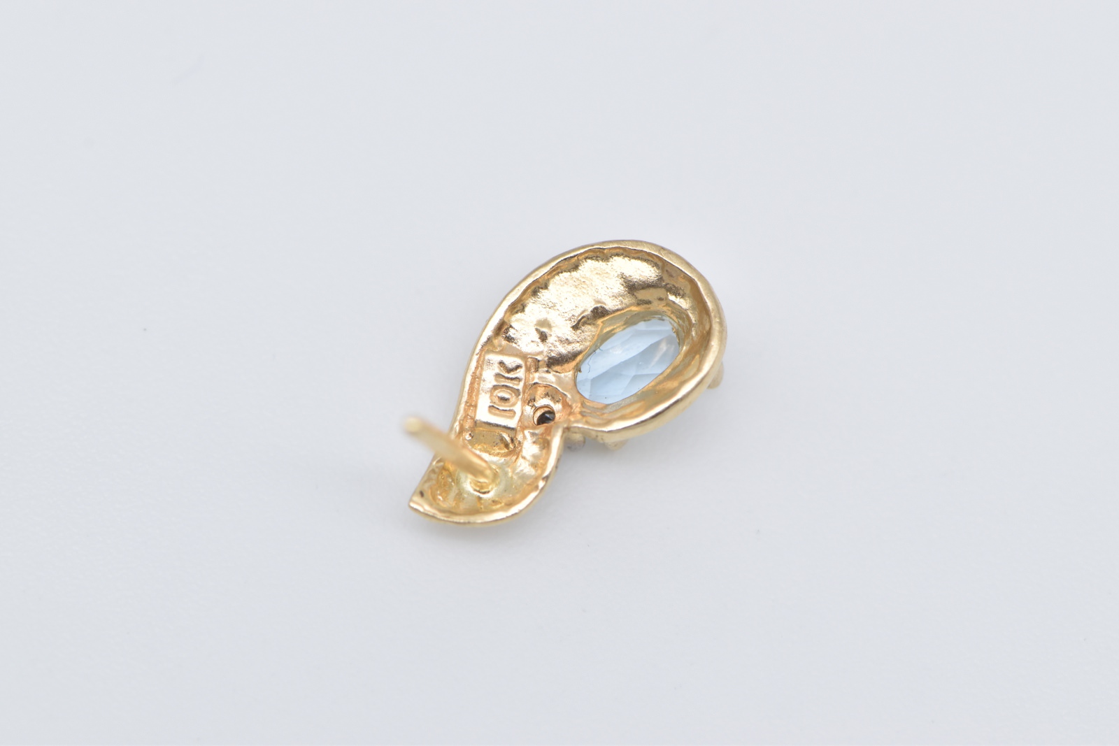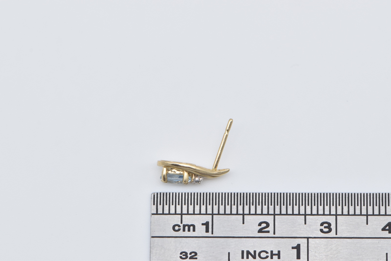 10K Oval Blue Topaz Diamond Accent Single Stud Yellow Gold Earring