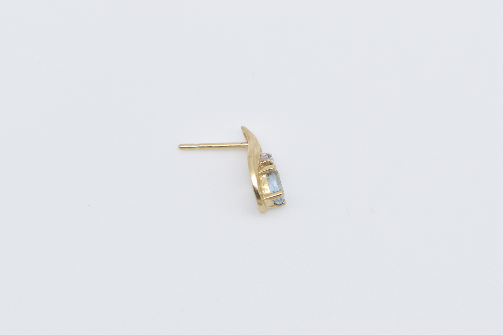 Item:  10K Oval Blue Topaz Diamond Accent Single Stud Yellow Gold Earring