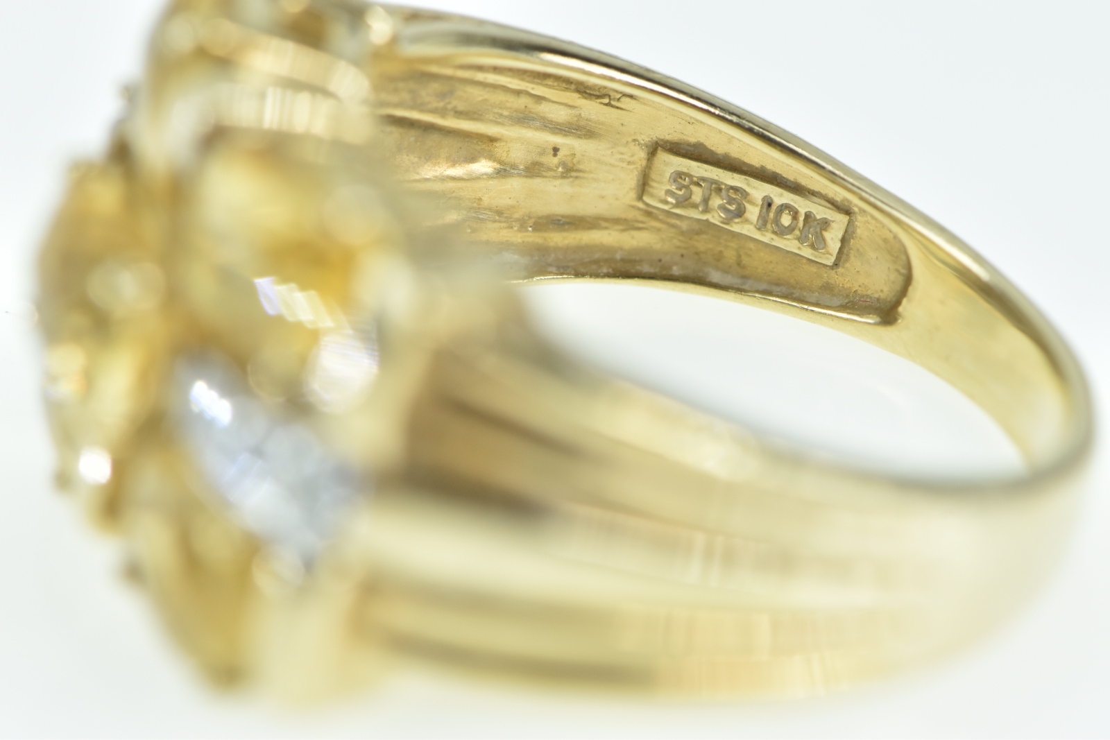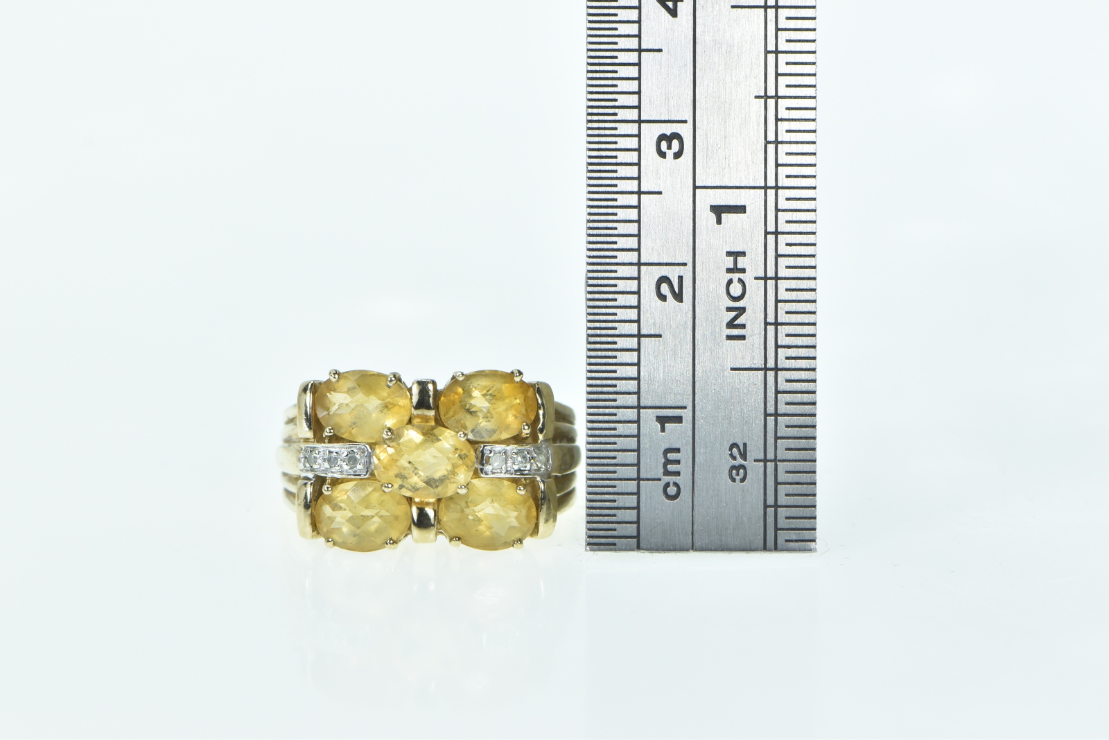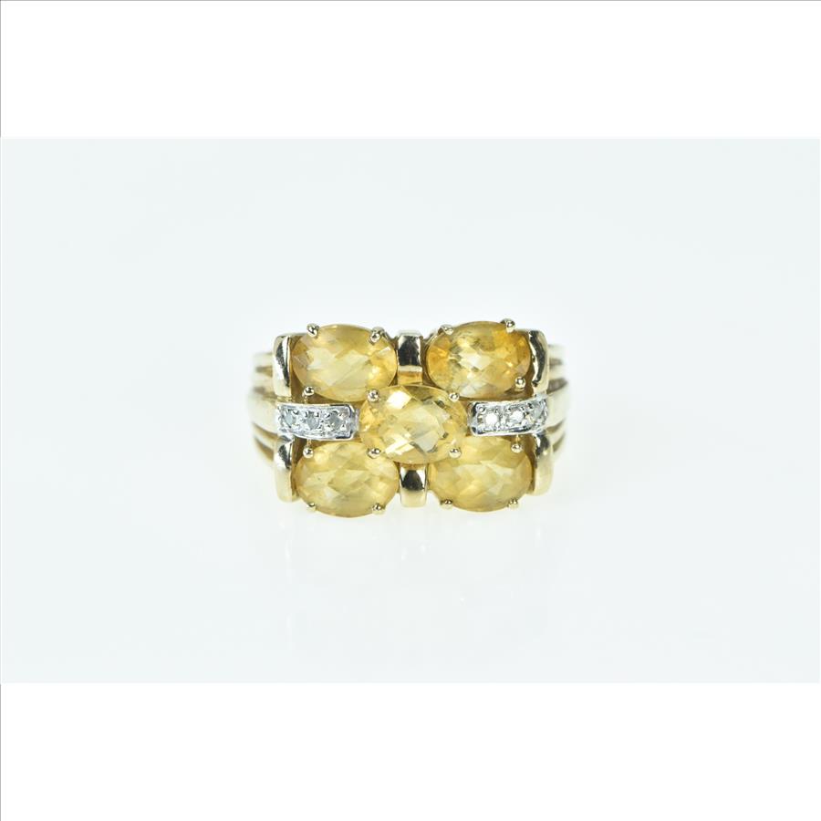 Item:  10K Oval Faceted Citrine Diamond Statement Cocktail Yellow Gold Ring, Size 7