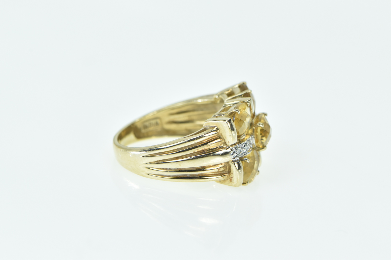 10K Oval Faceted Citrine Diamond Statement Cocktail Yellow Gold Ring, Size 7