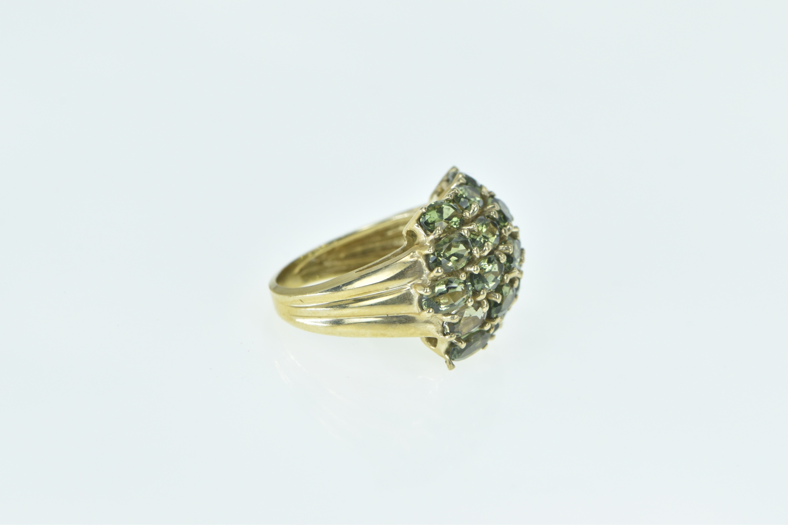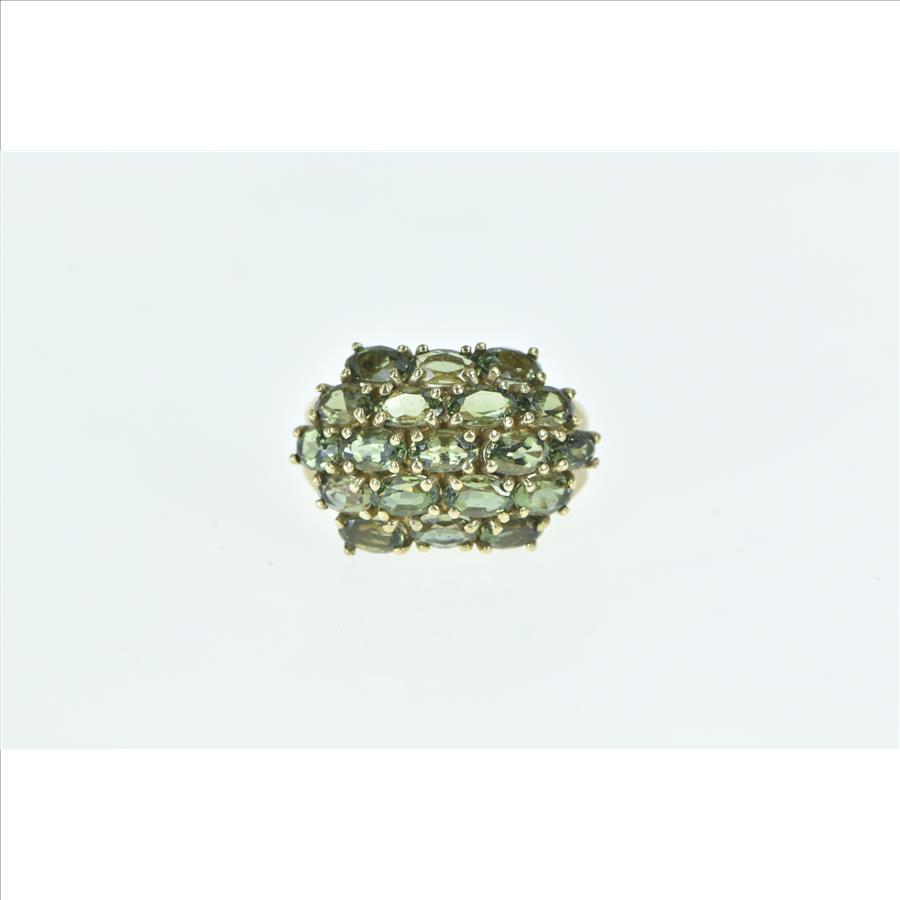 10K Oval Green Tourmaline Domed Cluster Yellow Gold Ring, Size 5