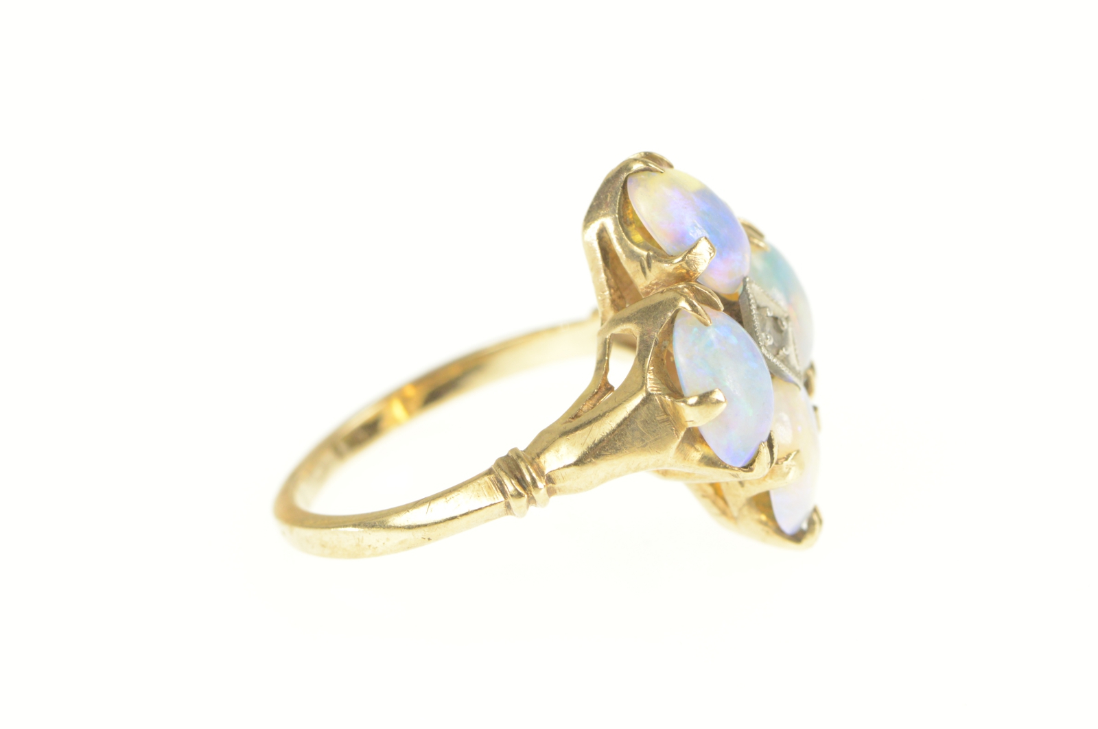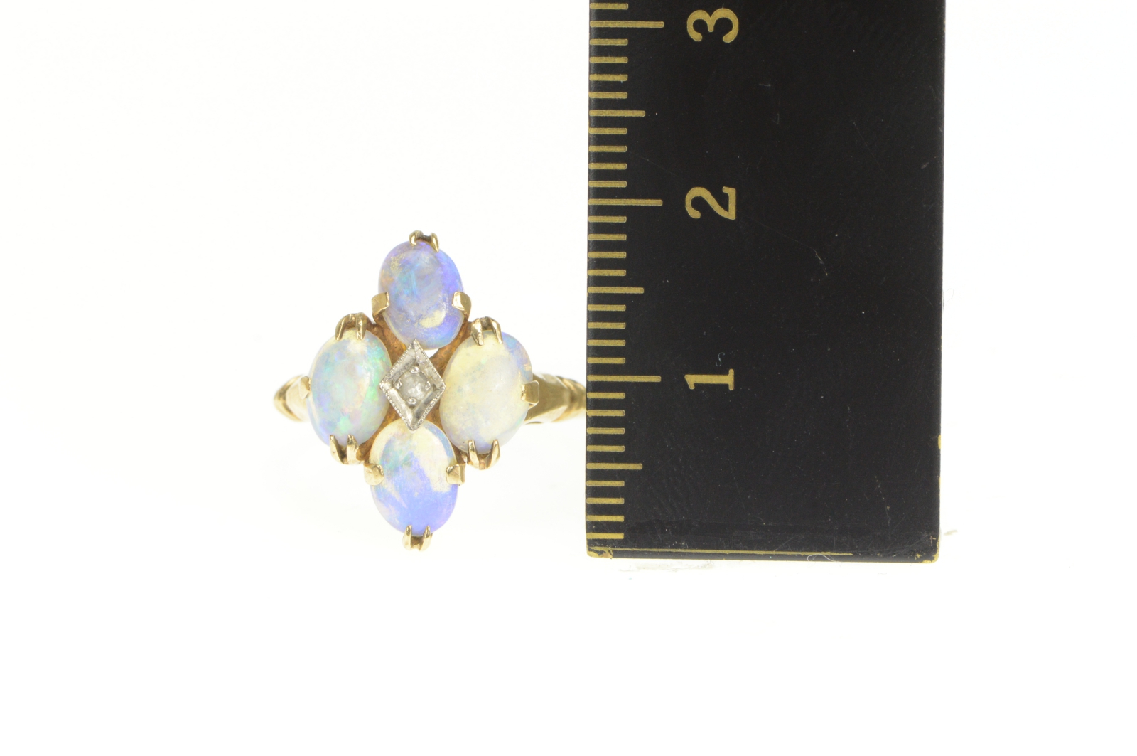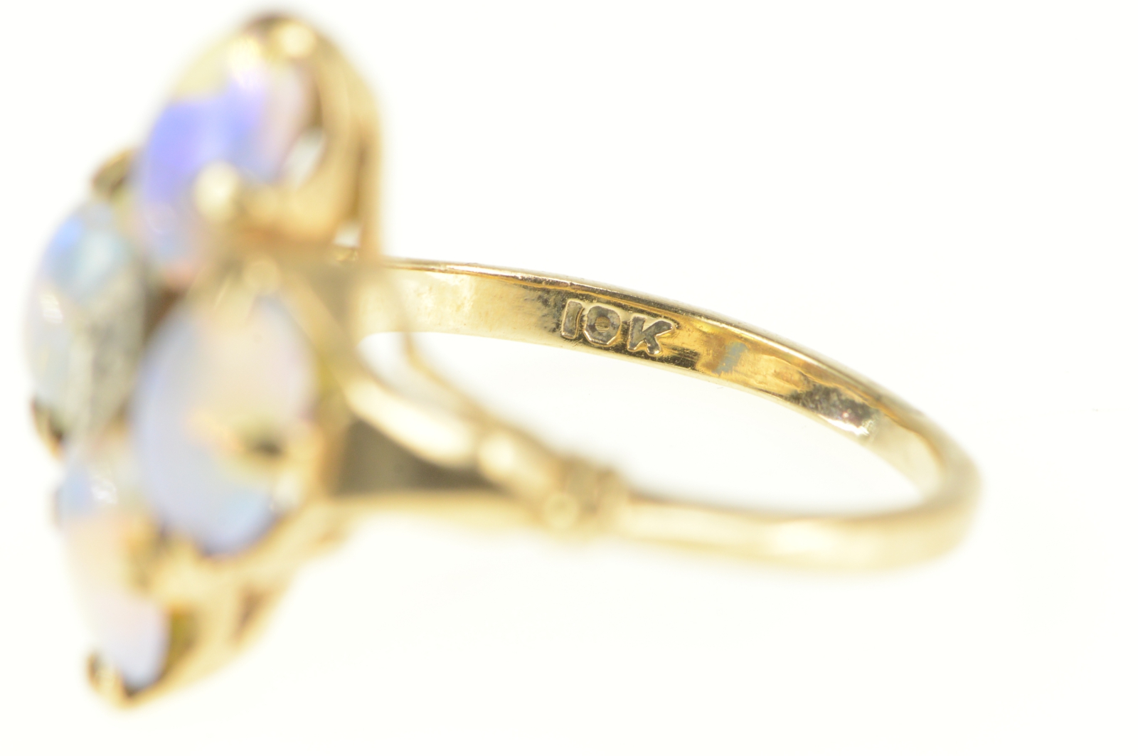 10K Oval Opal Cabochon Diamond Cocktail Yellow Gold Ring, Size 5