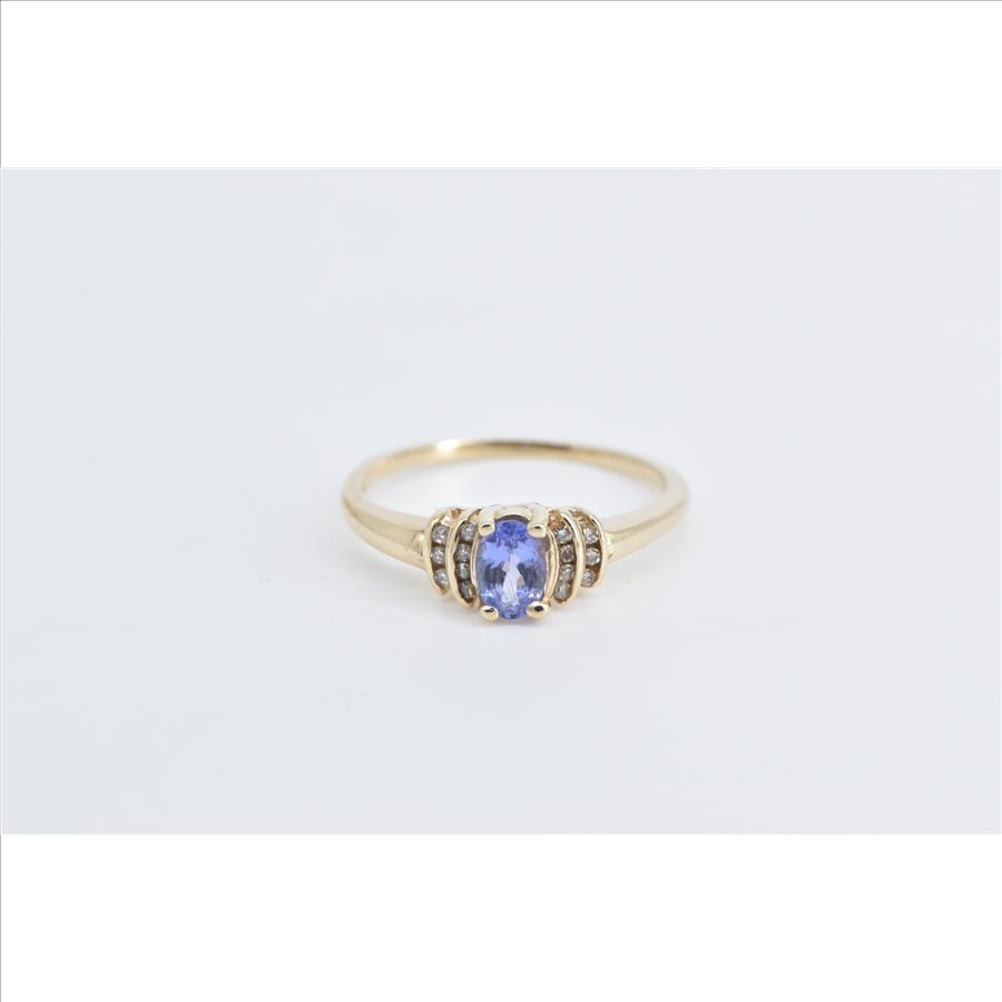 Item:  10K Oval Tanzanite Diamond Classic Statement Yellow Gold Ring, Size 8