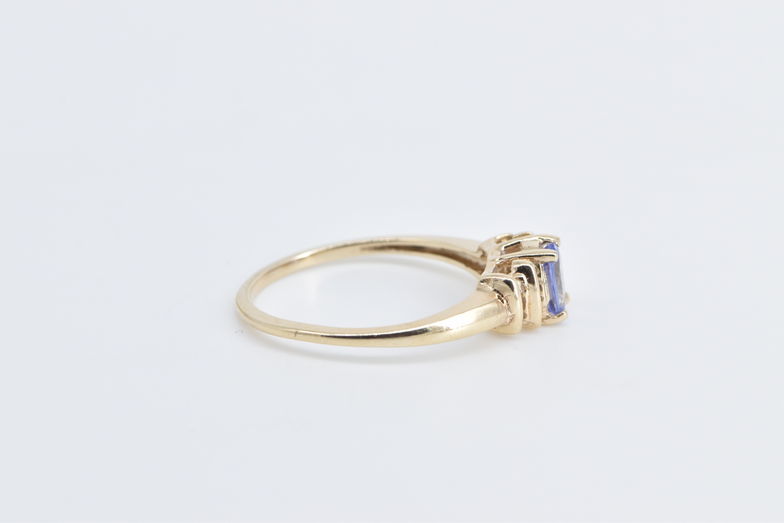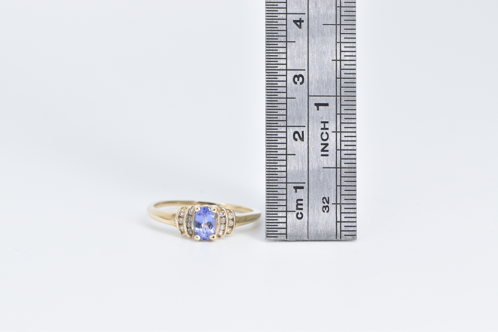 10K Oval Tanzanite Diamond Classic Statement Yellow Gold Ring, Size 8