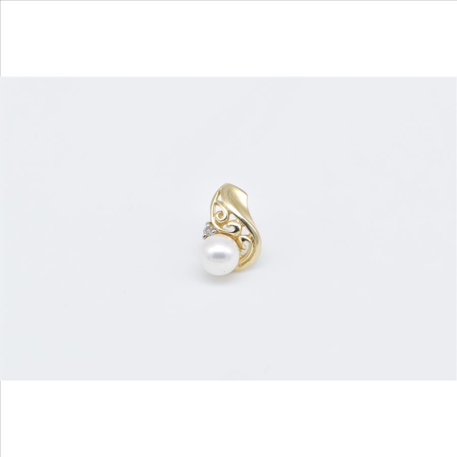 10K Pearl Diamond Accent Vintage Single Stud Yellow Gold Earring