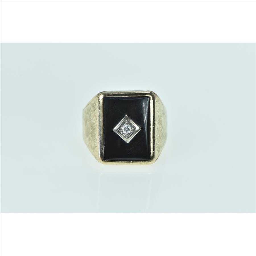 Item:  10K Squared Black Onyx Diamond Statement Yellow Gold Ring, Size 6.75