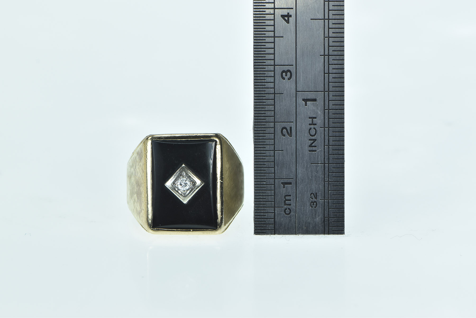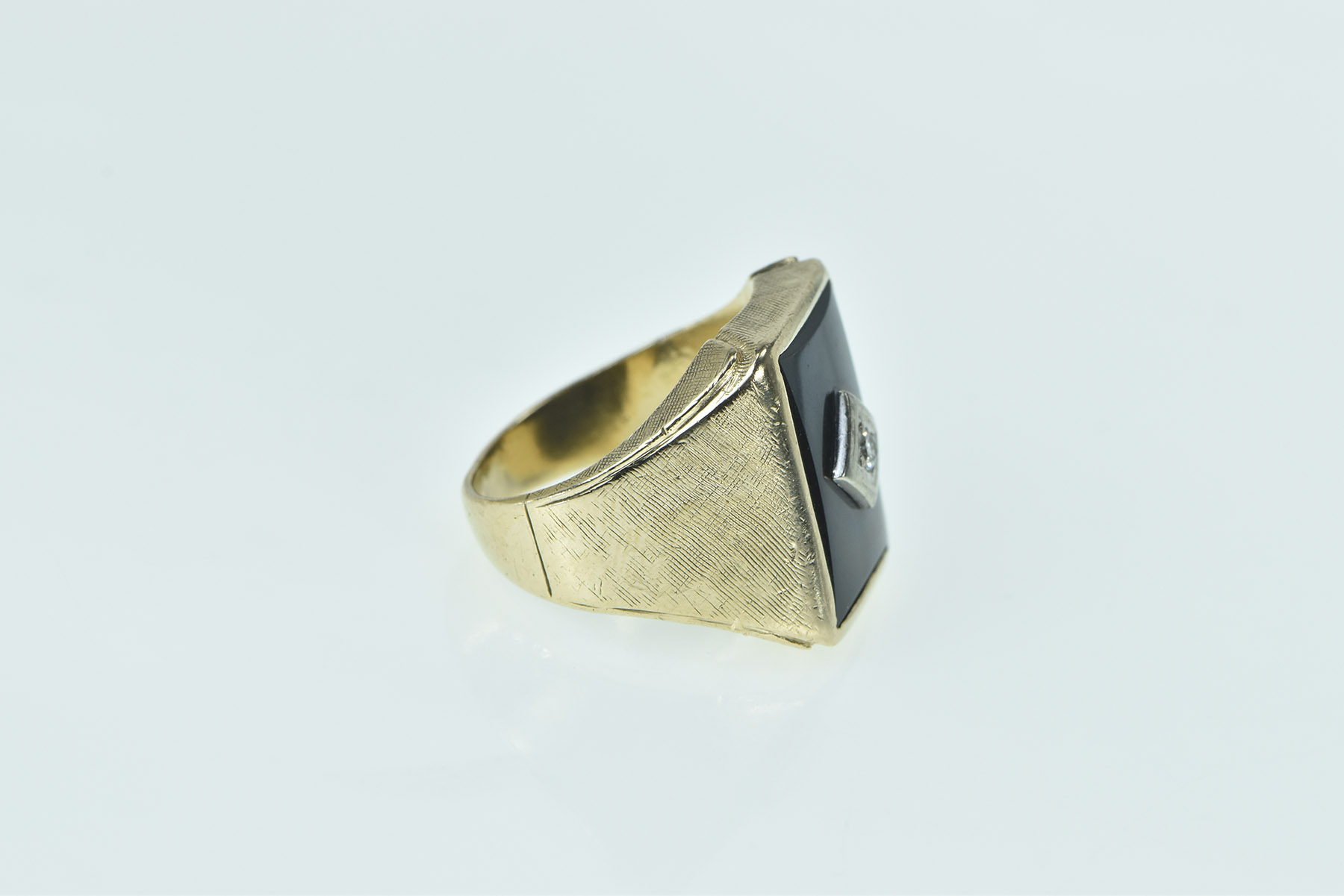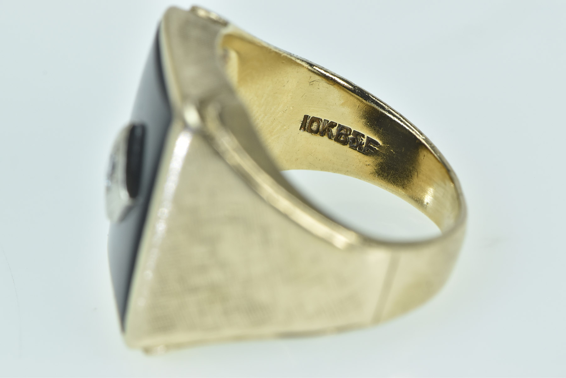 10K Squared Black Onyx Diamond Statement Yellow Gold Ring, Size 6.75