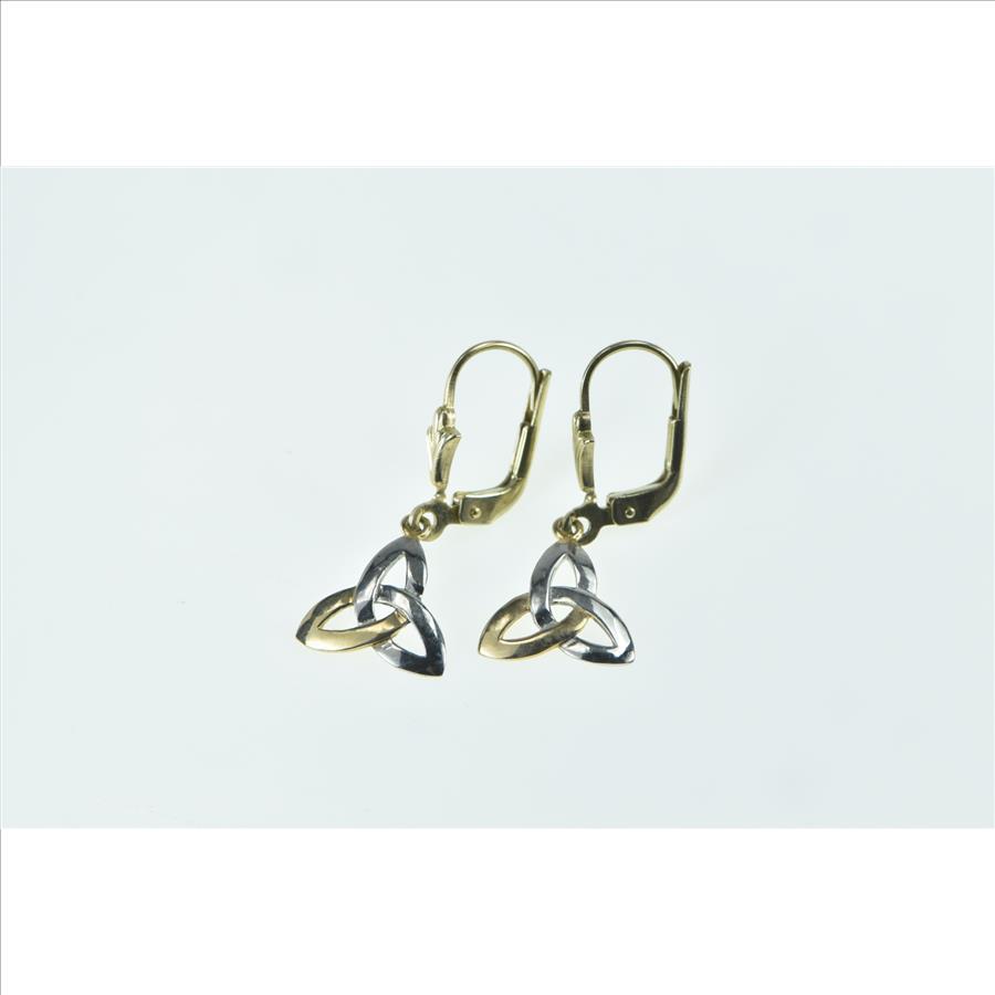 Item:  10K Triquetra Two Tone Dangle Statement Yellow Gold Earrings