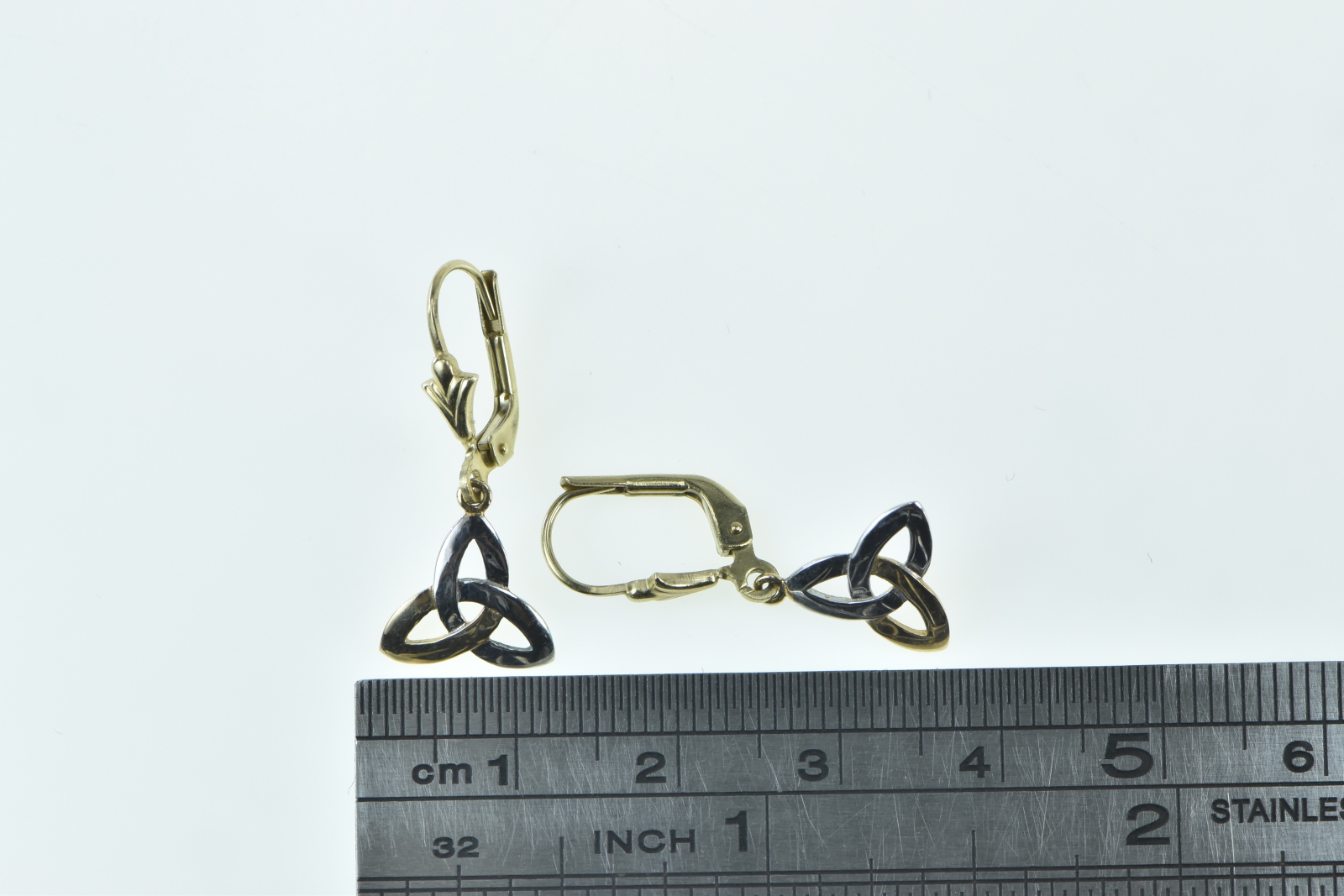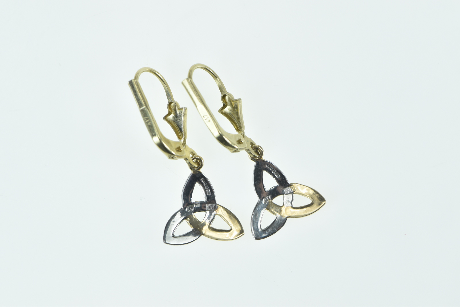 10K Triquetra Two Tone Dangle Statement Yellow Gold Earrings