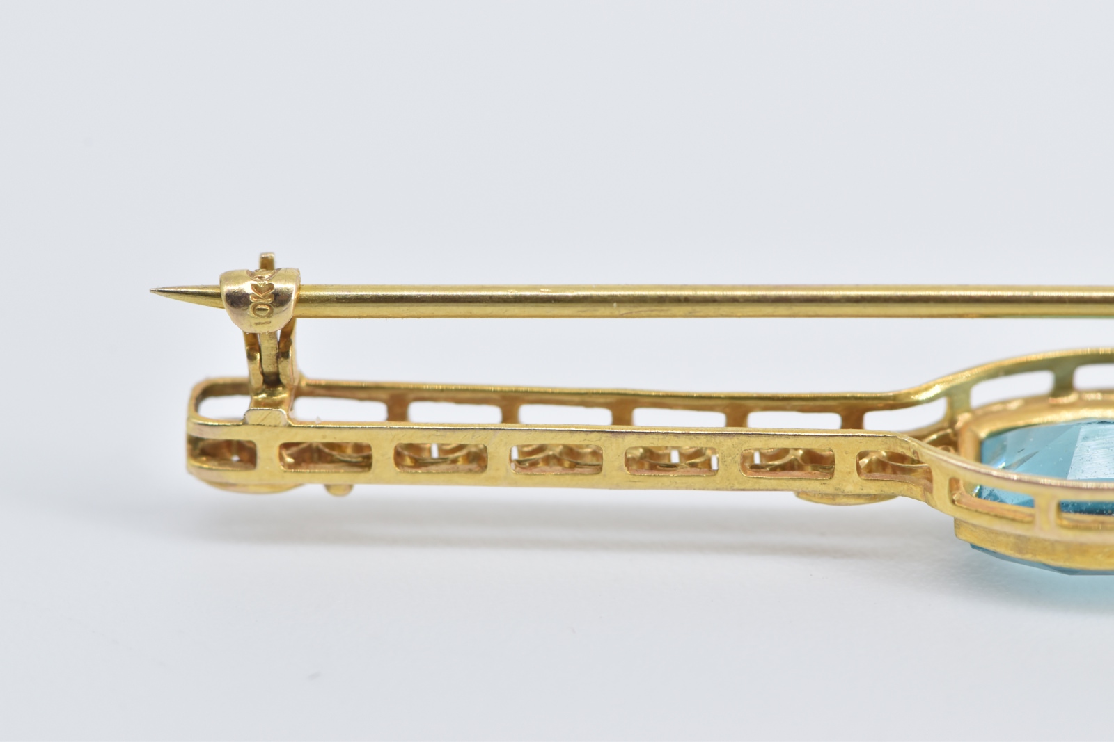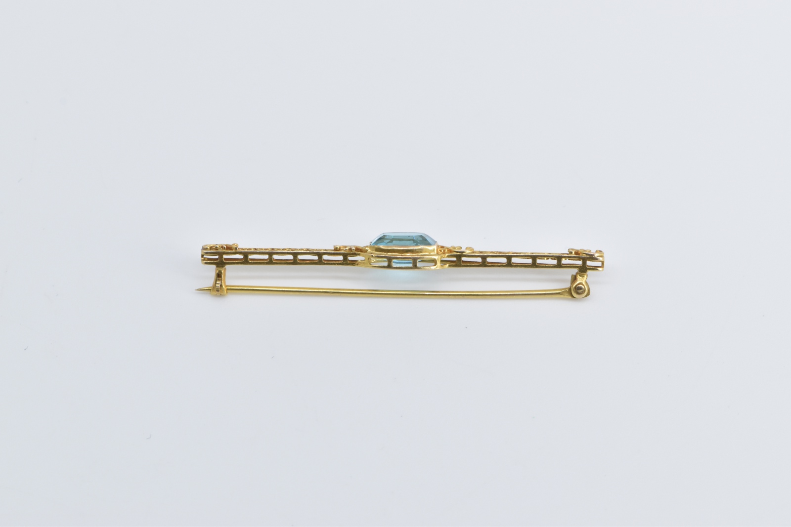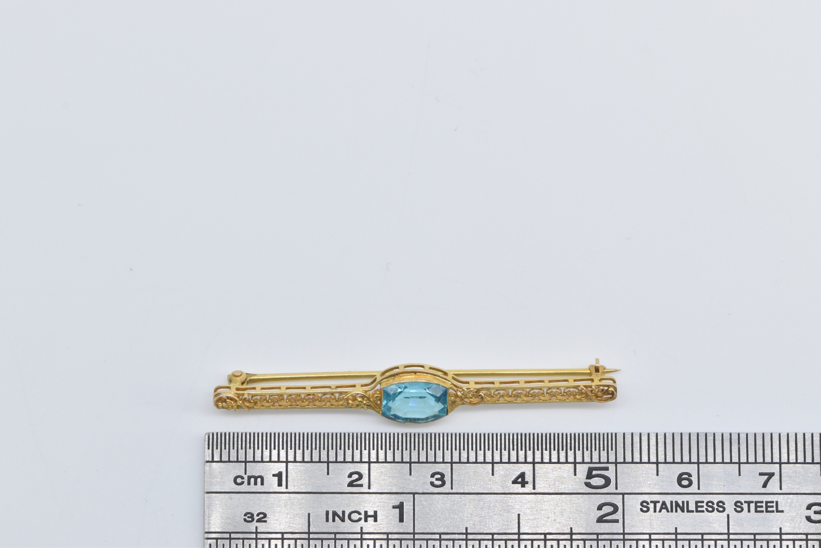 10K Victorian Blue Topaz Ornate Filigree Bar Yellow Gold Pin/Brooch