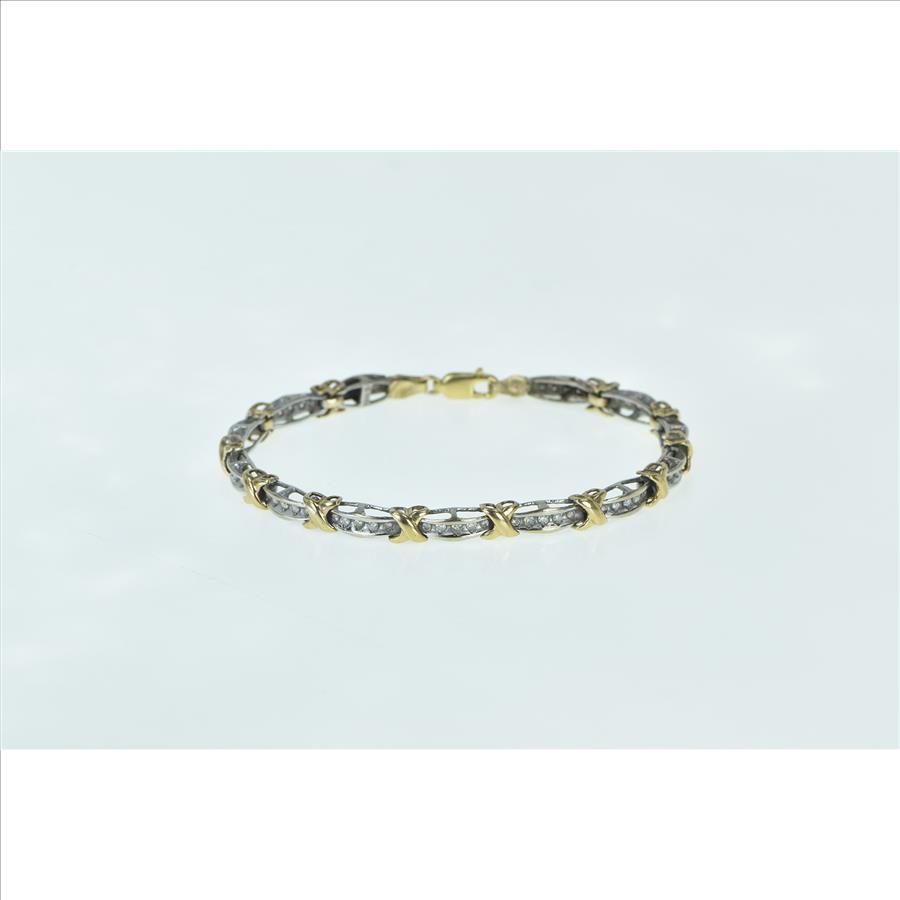 Item:  10K Vintage Classic Two Tone Diamond Bar Tennis White Gold Bracelet 7"