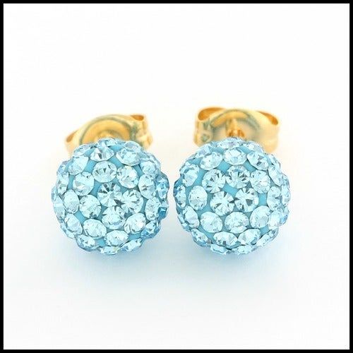 10k Yellow Gold Light Blue Crystal 8mm in Diameter Stud Earrings