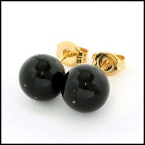 10k Yellow Gold Onyx 8mm in Diameter Stud Earrings