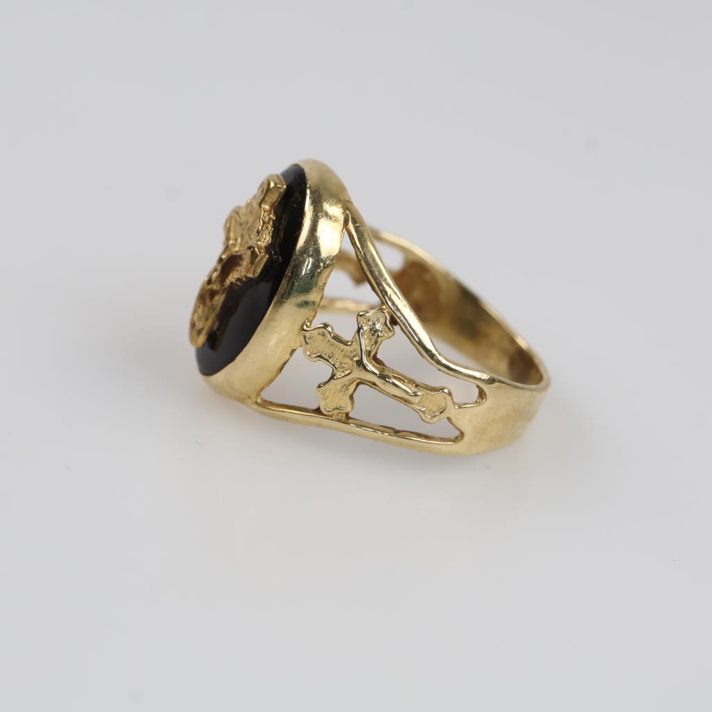 10kt Gold Black Stone Religious Ring