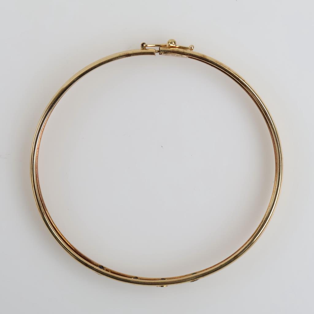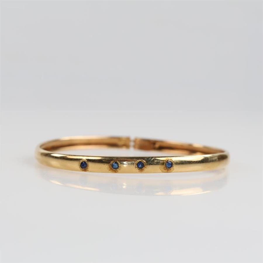 10kt Gold Blue Stone Bangle Semi-Hollow Bracelet