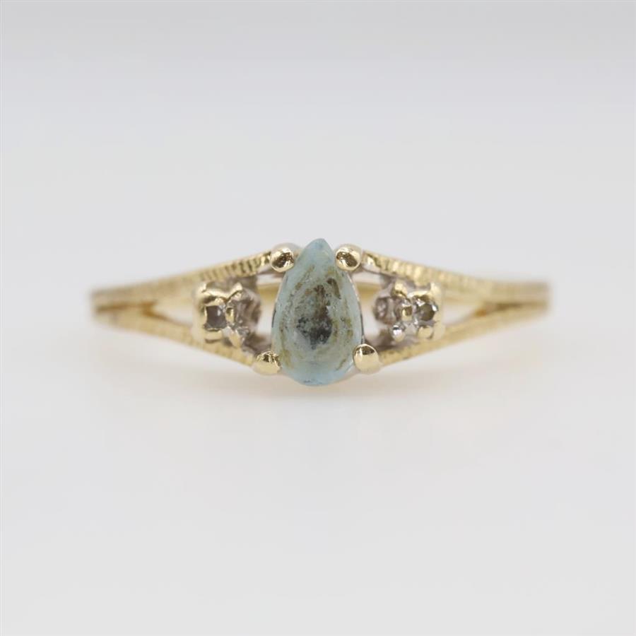 10kt Gold Blue Stone Diamond Accent Ring