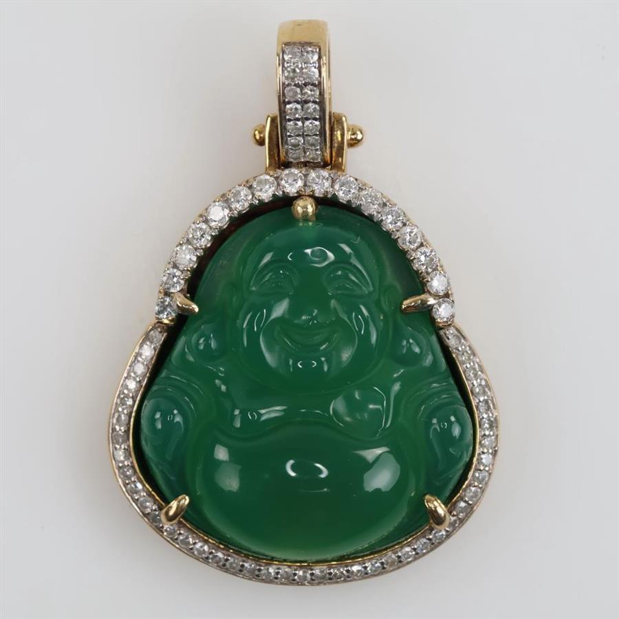 10kt Gold Carved Nephrite Jade Buddha Pendant