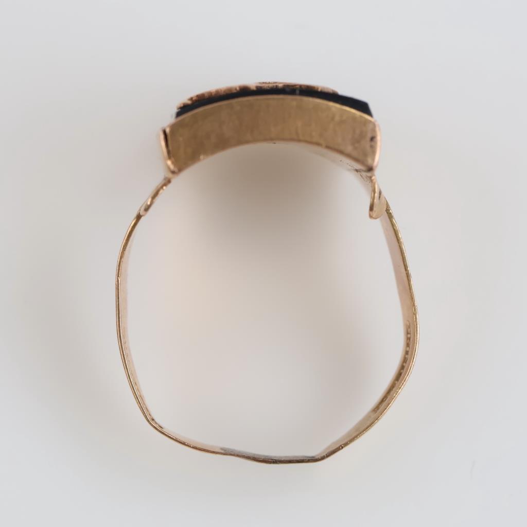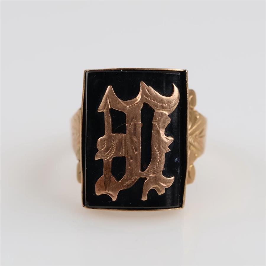 10kt Gold "E" Black Stone Ring