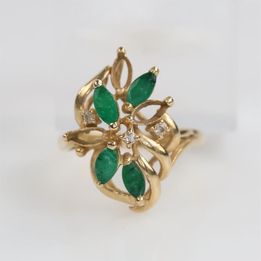 10kt Gold Green Stone Diamond Accent Ring