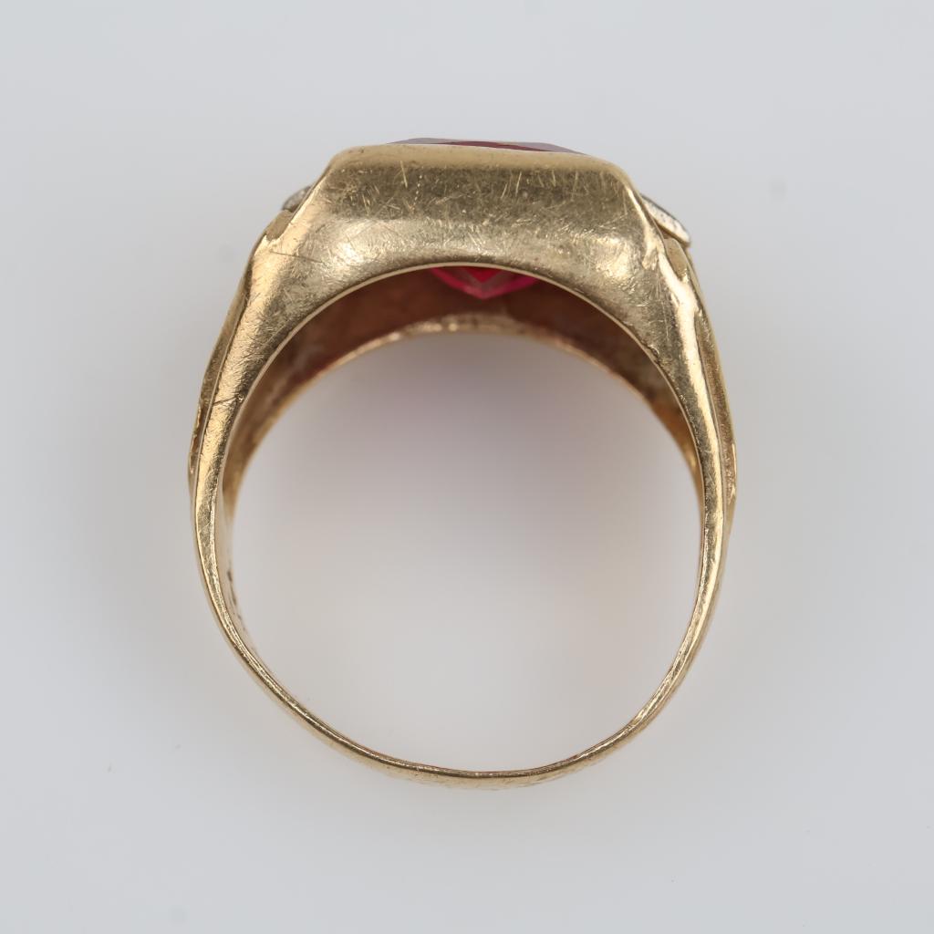 10kt Gold Red And Clear Stone Ring