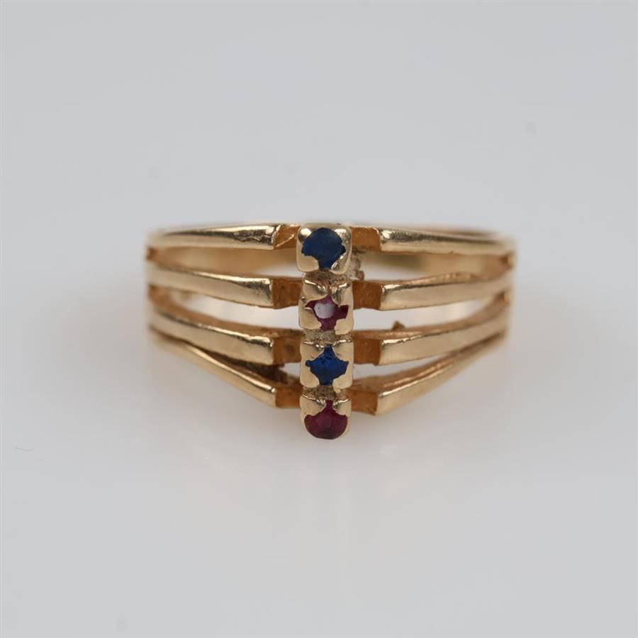 10kt Gold Red Ruby And Blue Sapphire Ring