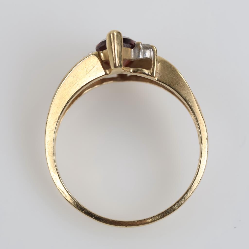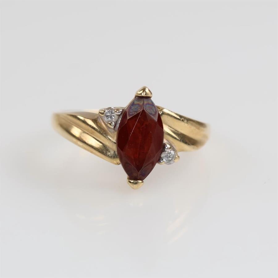 10kt Gold Red Stone Diamond Accent Ring